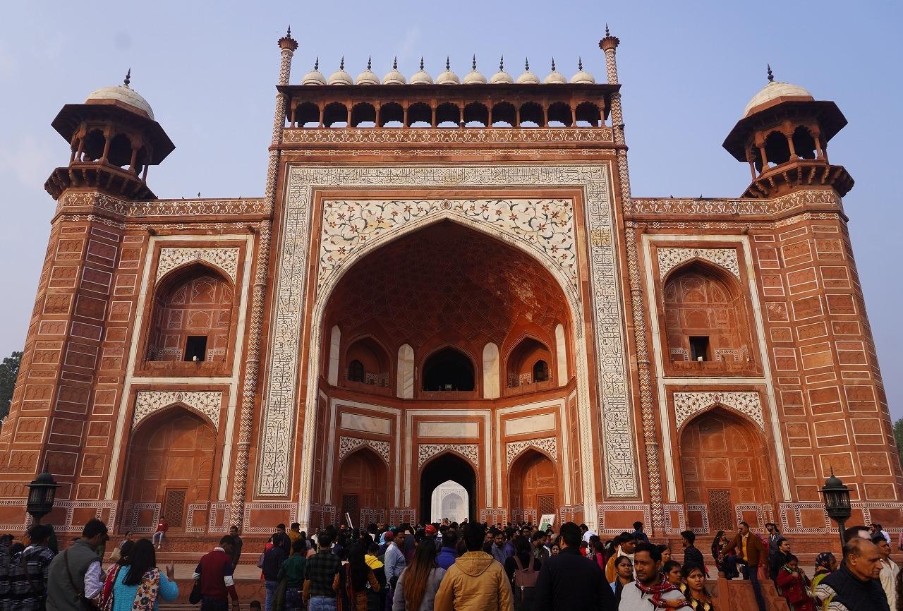 この建物だけでも圧倒的な大きさです。幅41.20 x 34 メートルに高さ23メートルの長方形の建物です。この向こうに「タージ・マハール(Taj Mahal)」が隠れているのは分かりますが、その姿はここからは見えません。