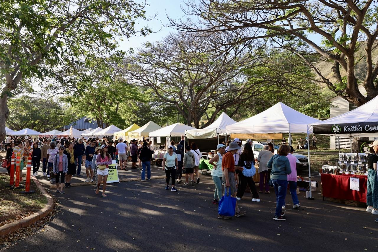 KCCファーマーズマーケットの会場は、ダイヤモンドヘッドの麓にあるカピオラニ・コミュニティ・カレッジの駐車場。