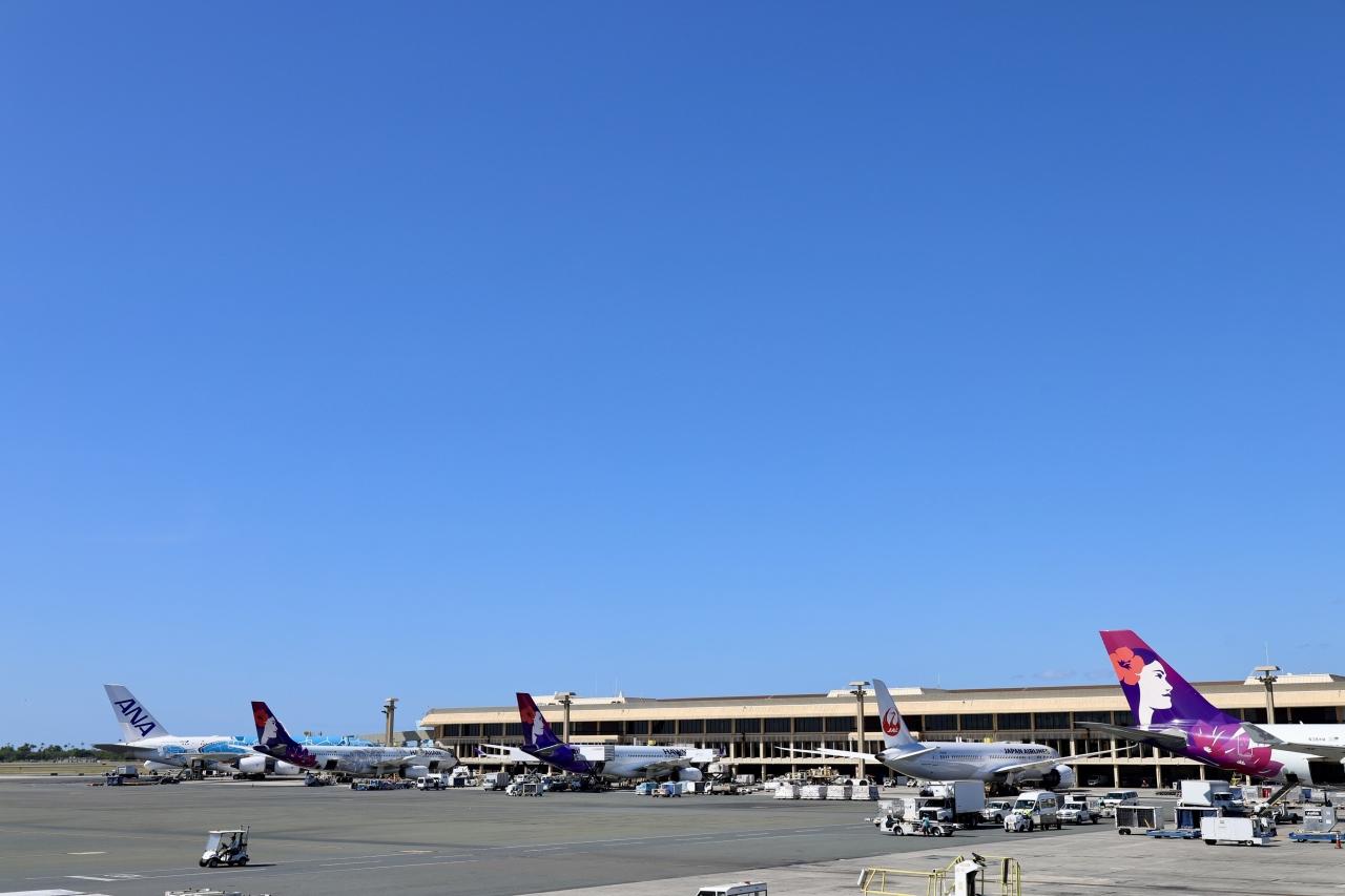 ずらっと並んだ飛行機をガラス越しではなく、ハワイの風を感じながら直に眺められるのがいい。 -