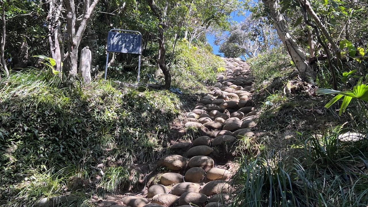 ここの入り口は八丈島特有の玉石垣で作られていました。八丈服部屋敷 名所・史跡