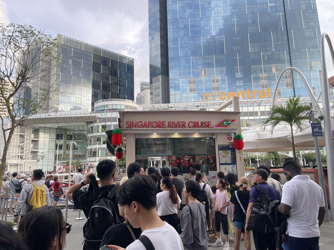 何とか見つけたのだが大行列。7時と8時の便があるが、8時の便になってしまうと飛行機の時間に間に合わないので、なんとしても今回の7時の便に乗らないといけないシンガポール リバー クルーズ アクティビティ・乗り物体験
