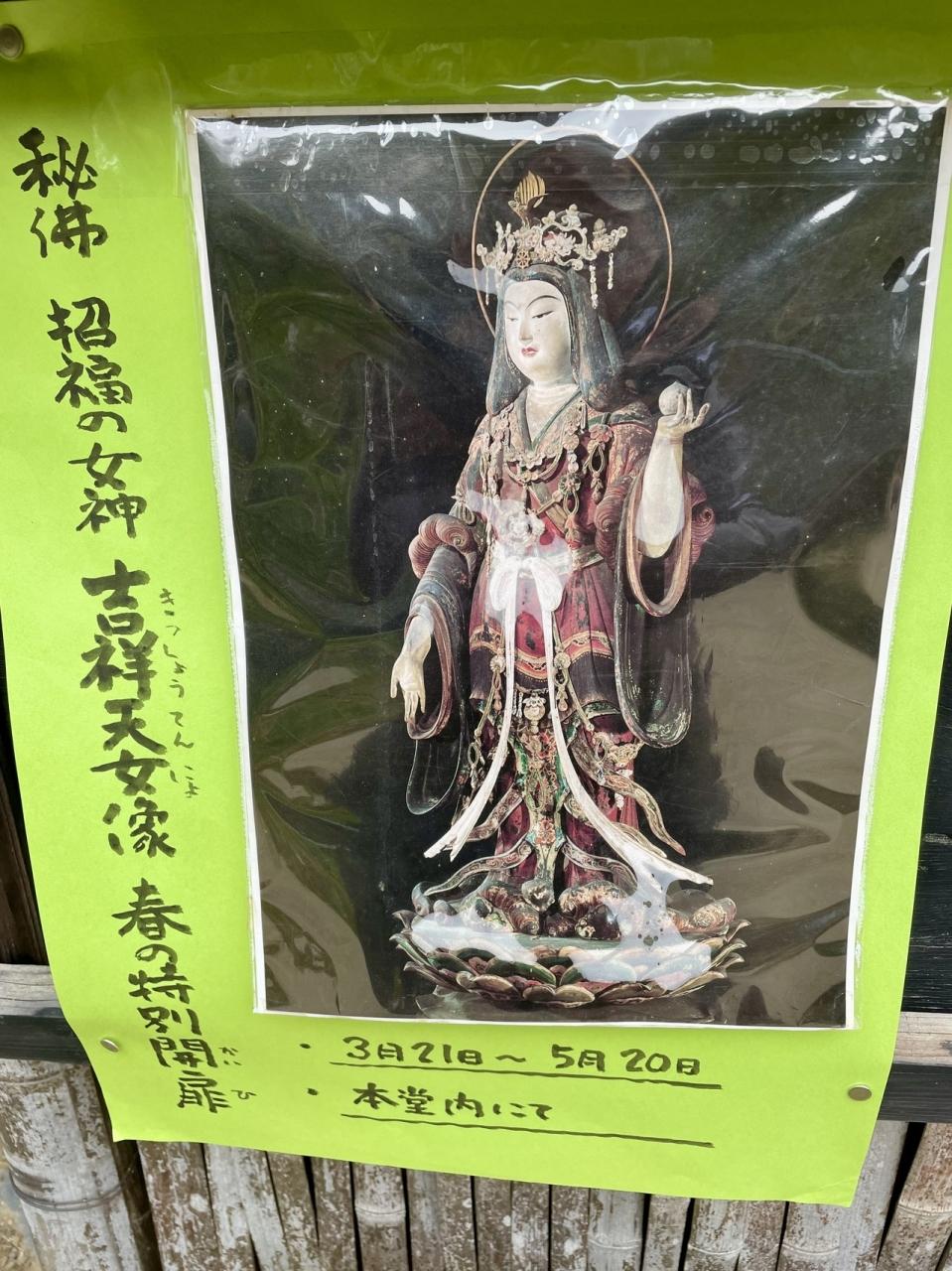 吉祥天女像の特別開扉の時期だったので、その美しいお姿を拝むことができました。