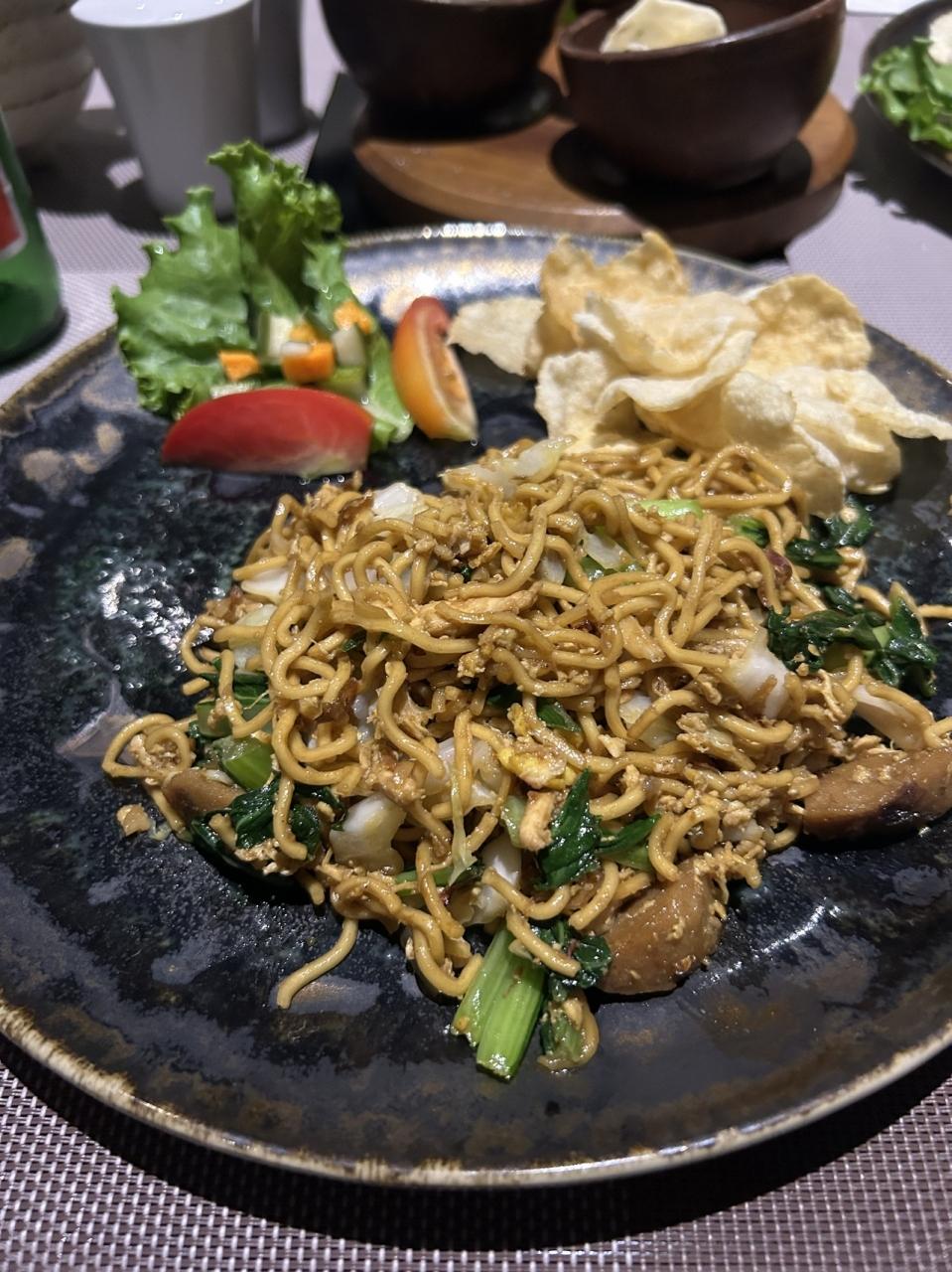 有無を言わさず出てきたのは「ミーゴレン」。なーんだ、と思ったけど、さすがシェラトンのレストラン。洗練されたお味で、今までのブッフェで出てきたどのミーゴレンより断然美味しかったです。しかし量が多いな。