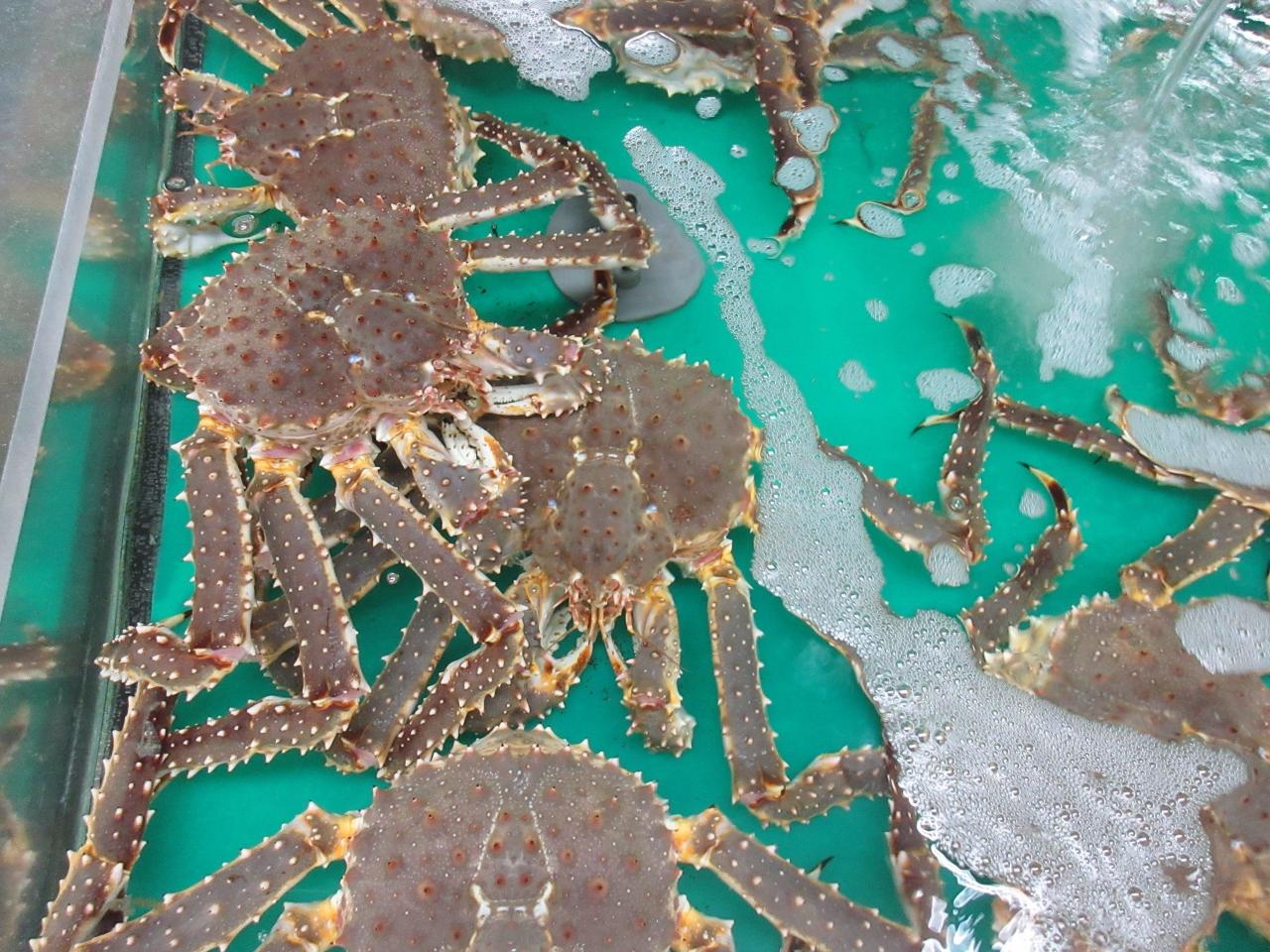 北海道では海産市場で安くていいですね、毛ガニ8匹+クールサービスで10000円でした。
