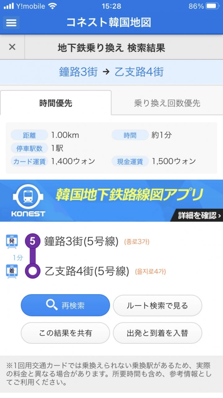 地下鉄移動は、思いの他簡単だったんですが、地下鉄内の地下通路移動、1号線から5号線とかへの移動がなかなか大変で、こんな記録をたたきだしました。