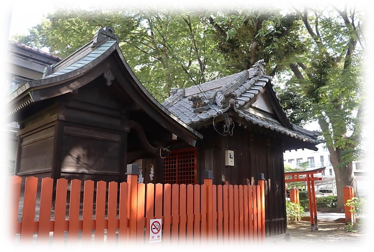 挿絵には鳥居をくぐった先の境内の様子も描かれており、この絵にあたるのが以下の境内社と思われますが、当時とは多少配置が変っているかもしれない。