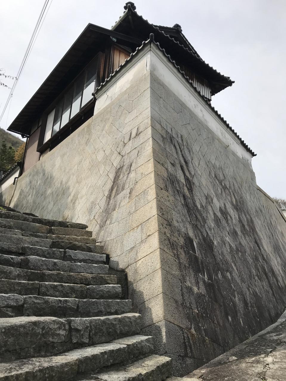 浦集落。中塚邸石垣。城のような風景。人の気配なし。