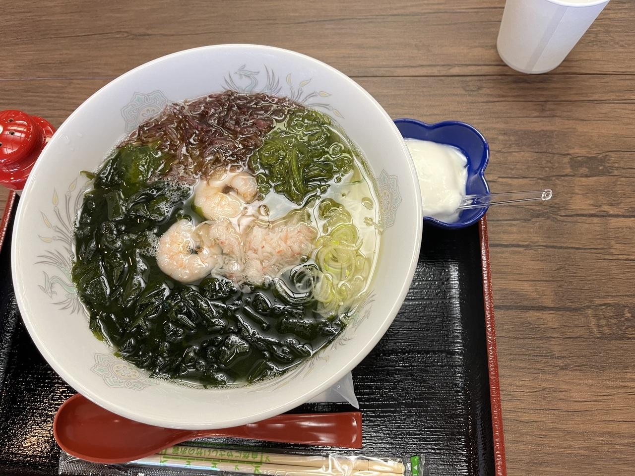 浜草ラーメン。龍泉洞が結構寒かったので海藻類の塩気ラーメンで温まりました♪ -