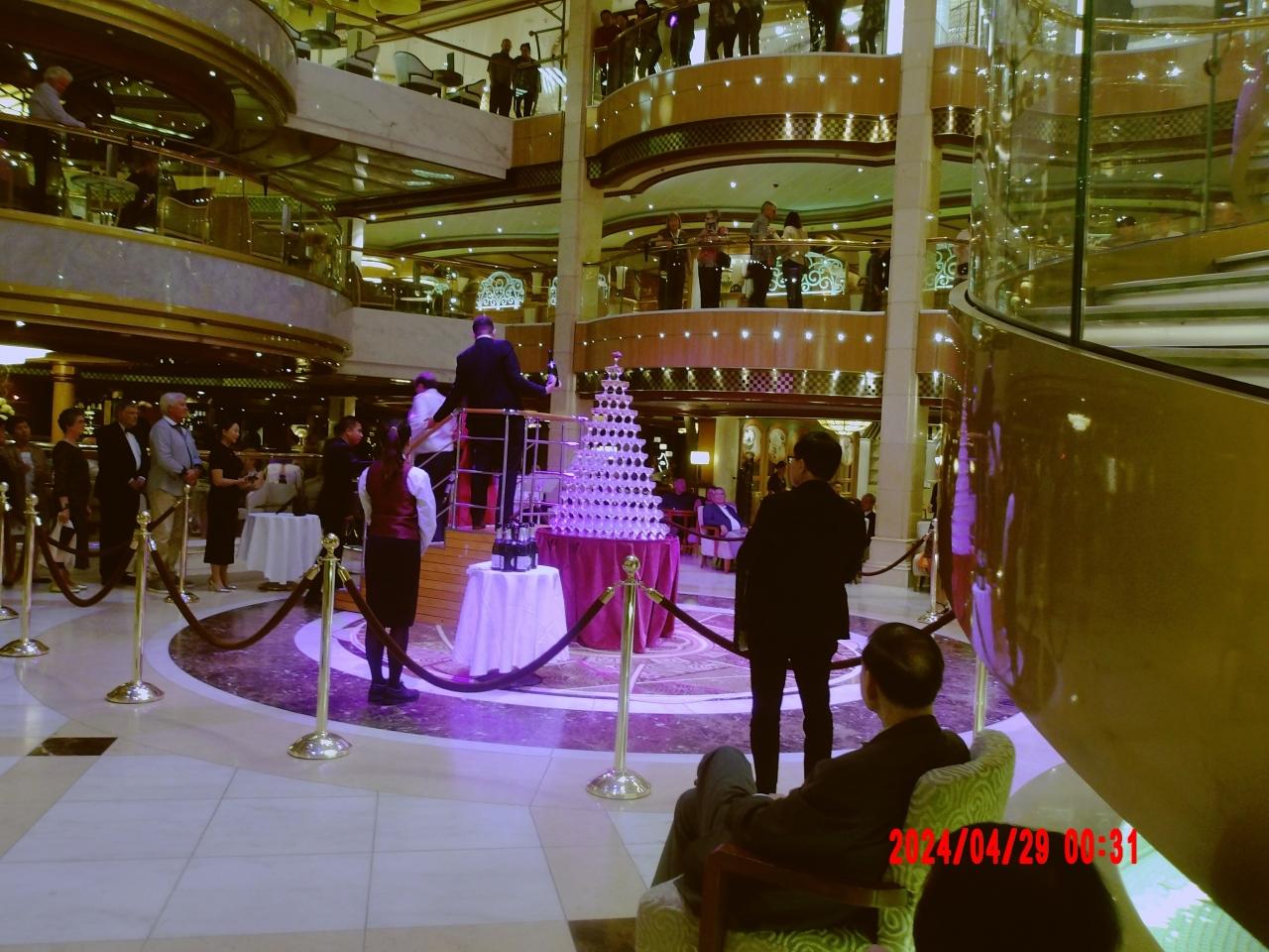 【シャンパンタワー】「食事」豪華プレミアム客船ロイヤルプリンセス号 全24日間アラスカ氷河