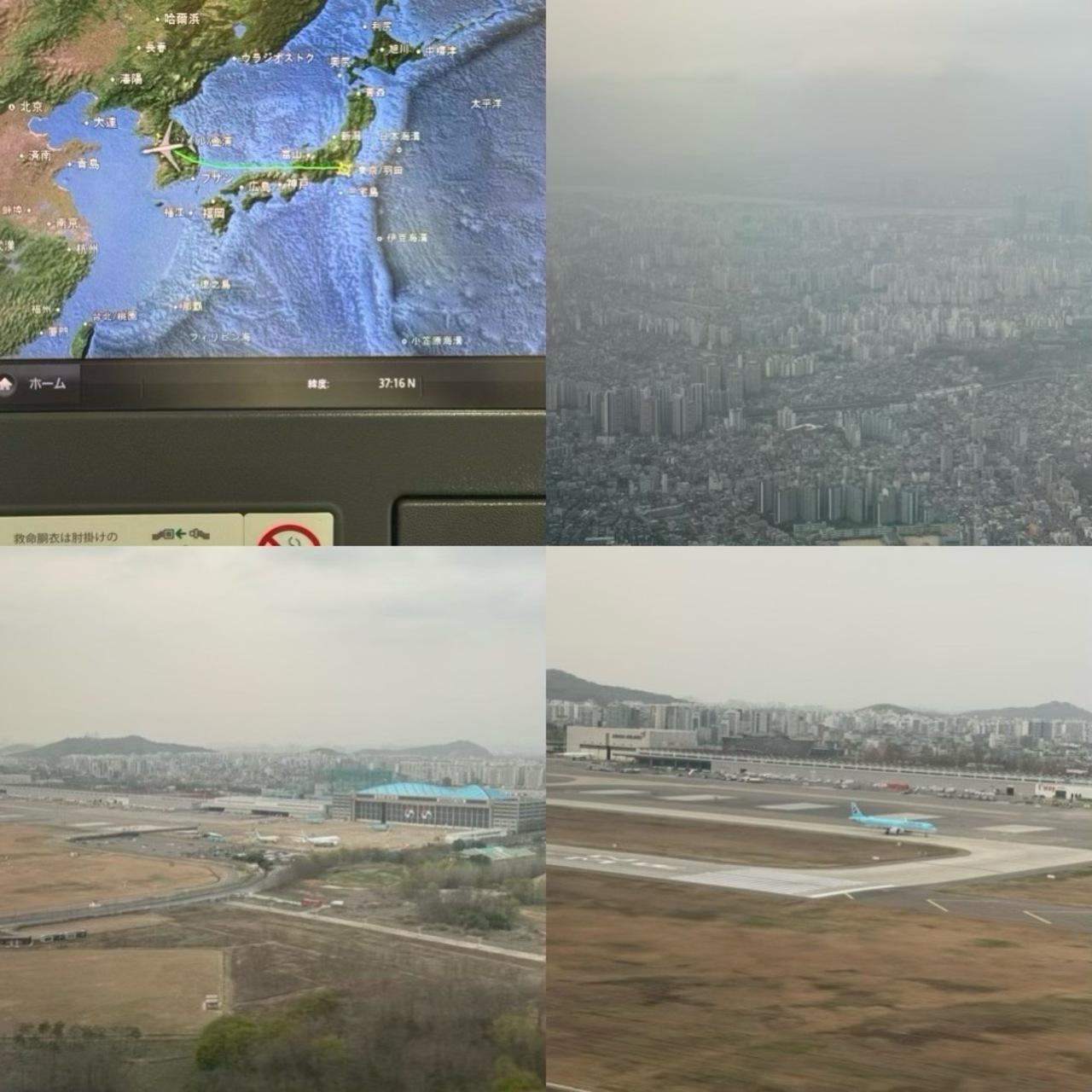あっという間に金浦へ到着、黄砂かPM2.5かモヤっているが少し早めに着きました。