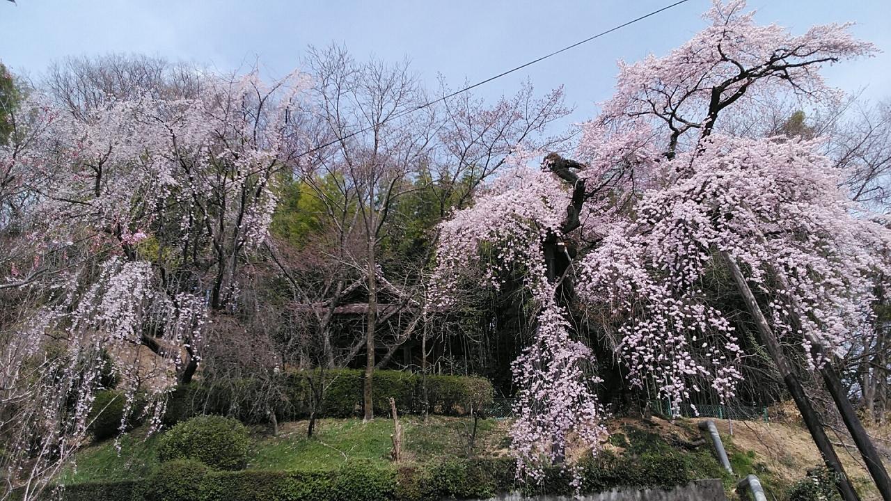 樹齢350年のしだれ桜は右で、左には後継ぎのしだれ桜も綺麗に咲いてます