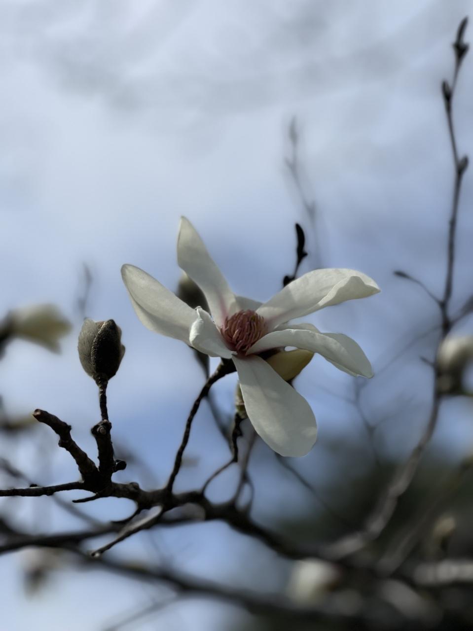 コブシの花でしょうか、こういうあっさり系の花も好きだな~(^^)/