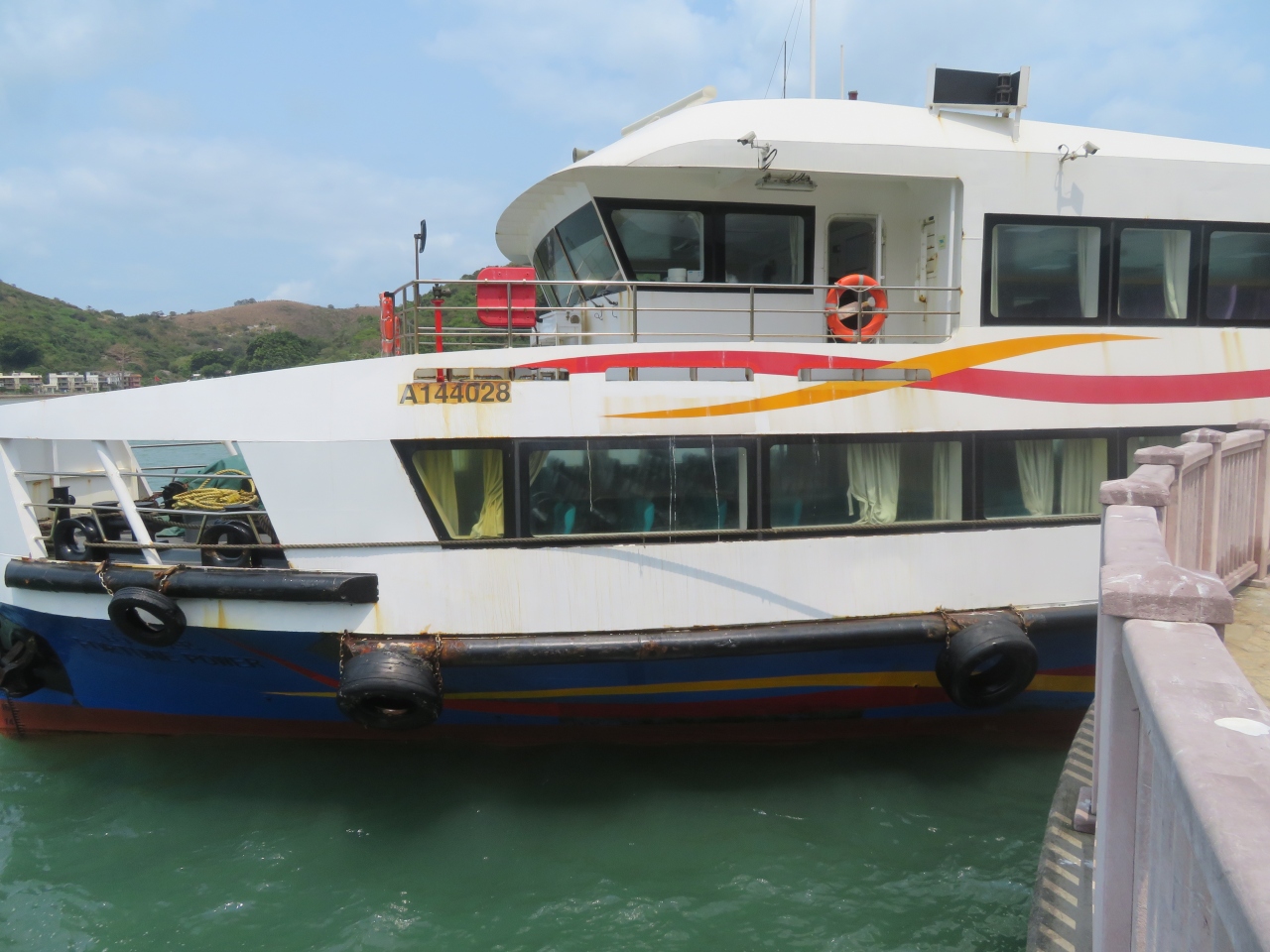 というのは次のフェリーが近づいていたためです。この船も屯門発ですが、途中、東涌などを経由して大澳に来ました。少し小ぶりの船です。