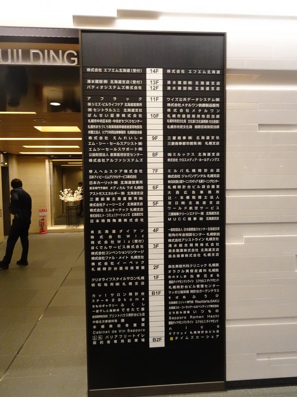 かみさんに「寿司食べたい」と言ったら、「じゃあ、時計台の近くに回らない根室花まるがあるよ」ということで、グーグル先生のお導きのもと、オフィスビルの中へ。