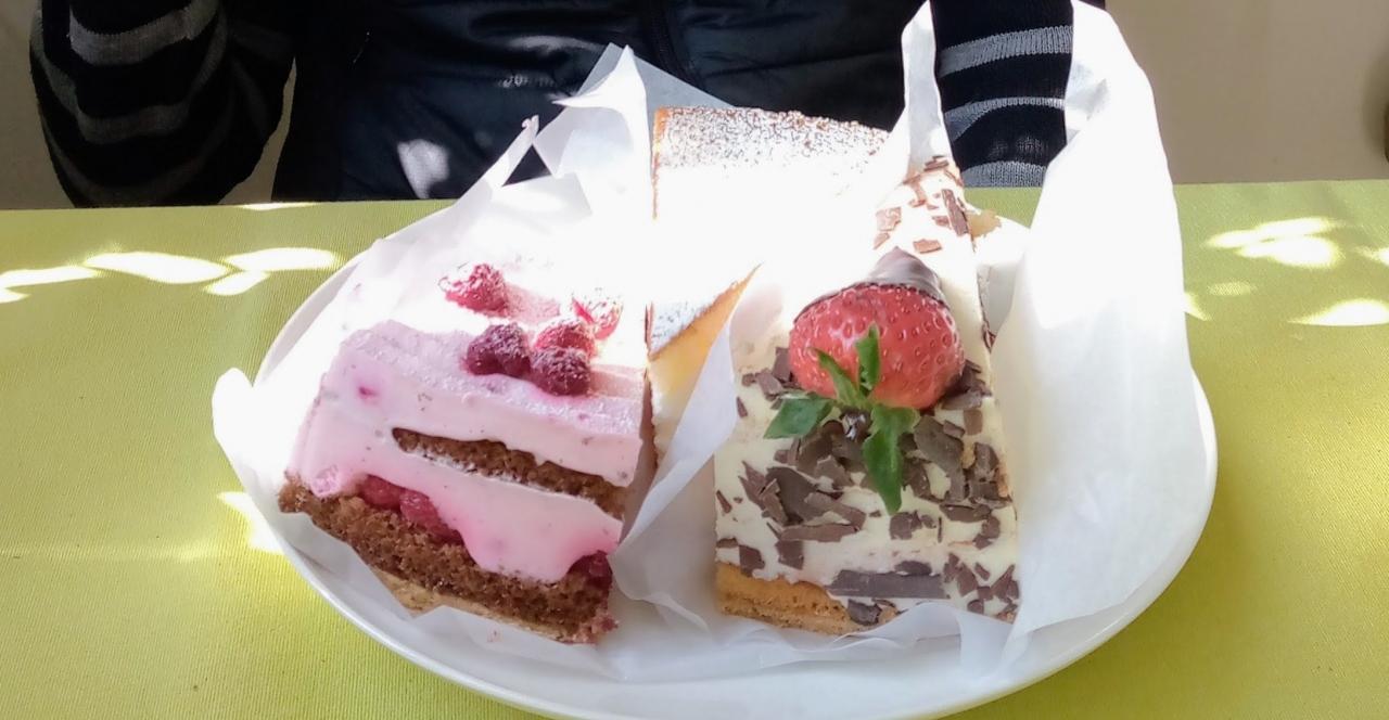 ケーキ屋さん。なにか買って帰ろうかと思いましたが、小さいホール、母と二人で食べるには大きすぎ。