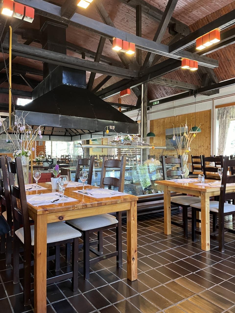 近くのレストランで昼食です。