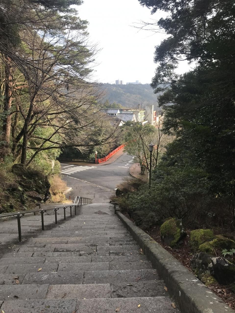階段登って振り返ってみると温泉郷が見えた。あんな高台とは!