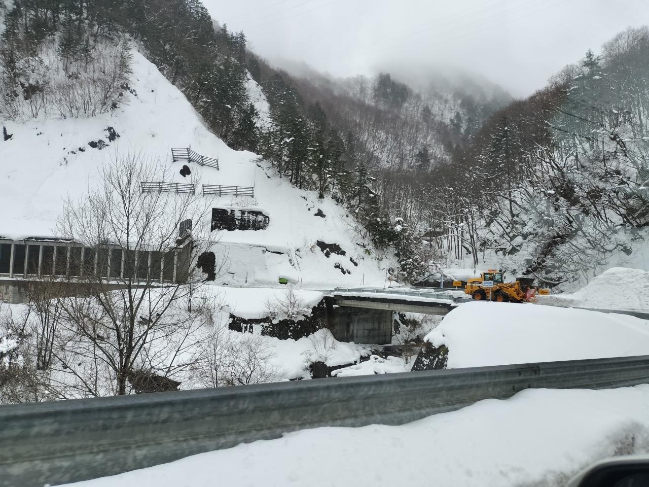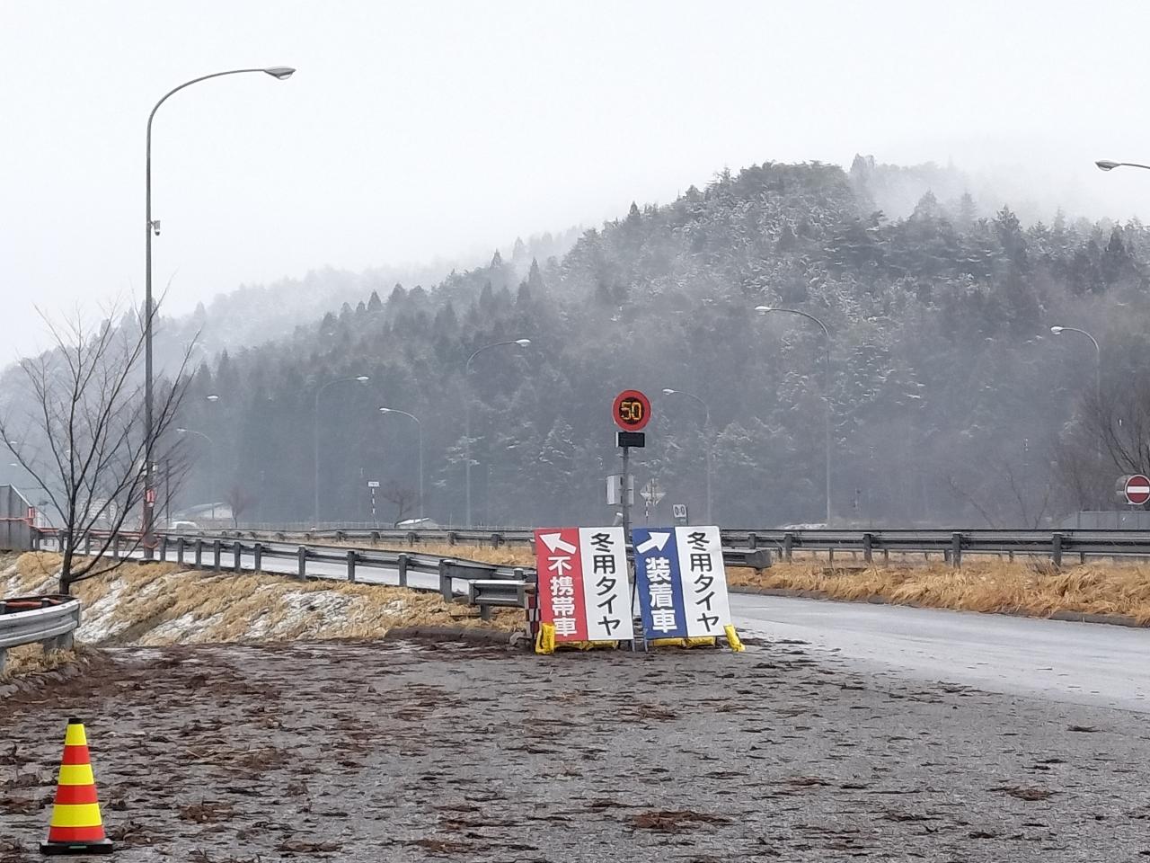雪予報のため、東海北陸自動車道は白鳥ICから福光IC間は冬タイヤ必須。