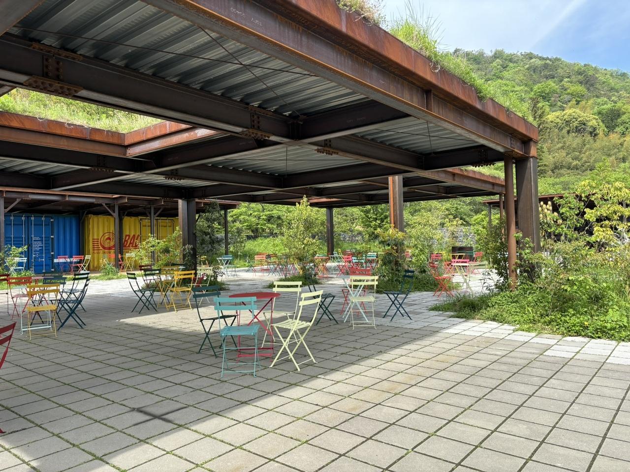緑の広場と周りの山々の緑、建物もお洒落でどれも、融合していました。