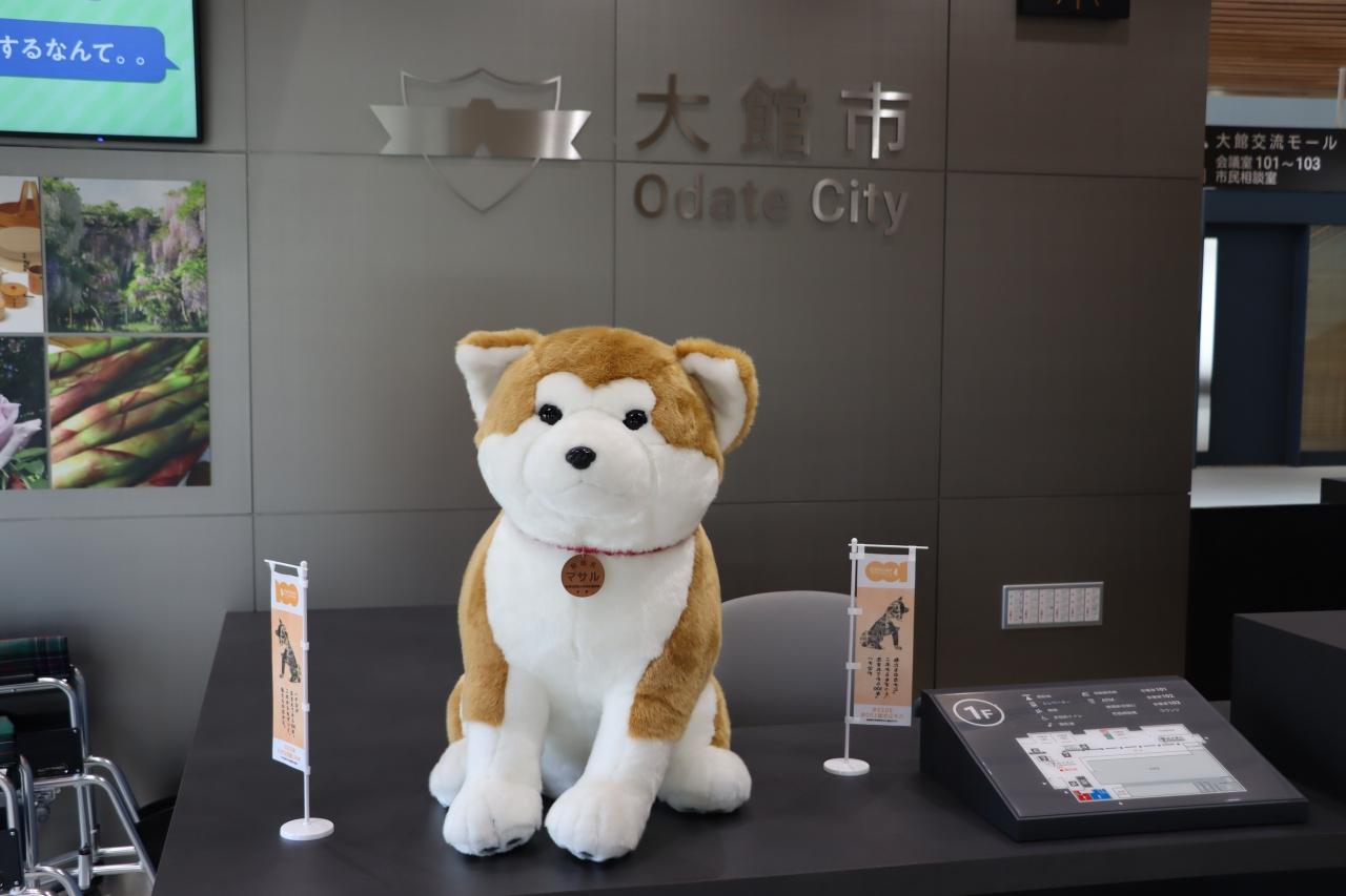 大館市役所受付には秋田犬の縫いぐるみ