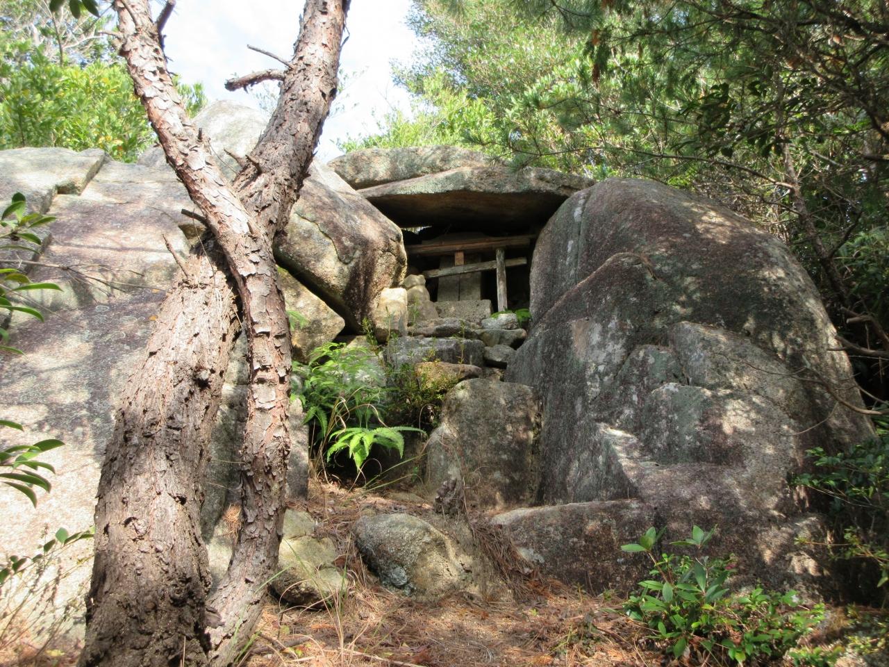 何十年か前までは中腹にあった神社の祠の赤い屋根が見えていたけど、今は旧祠はだいぶん古くなっているから分からないですね。 -