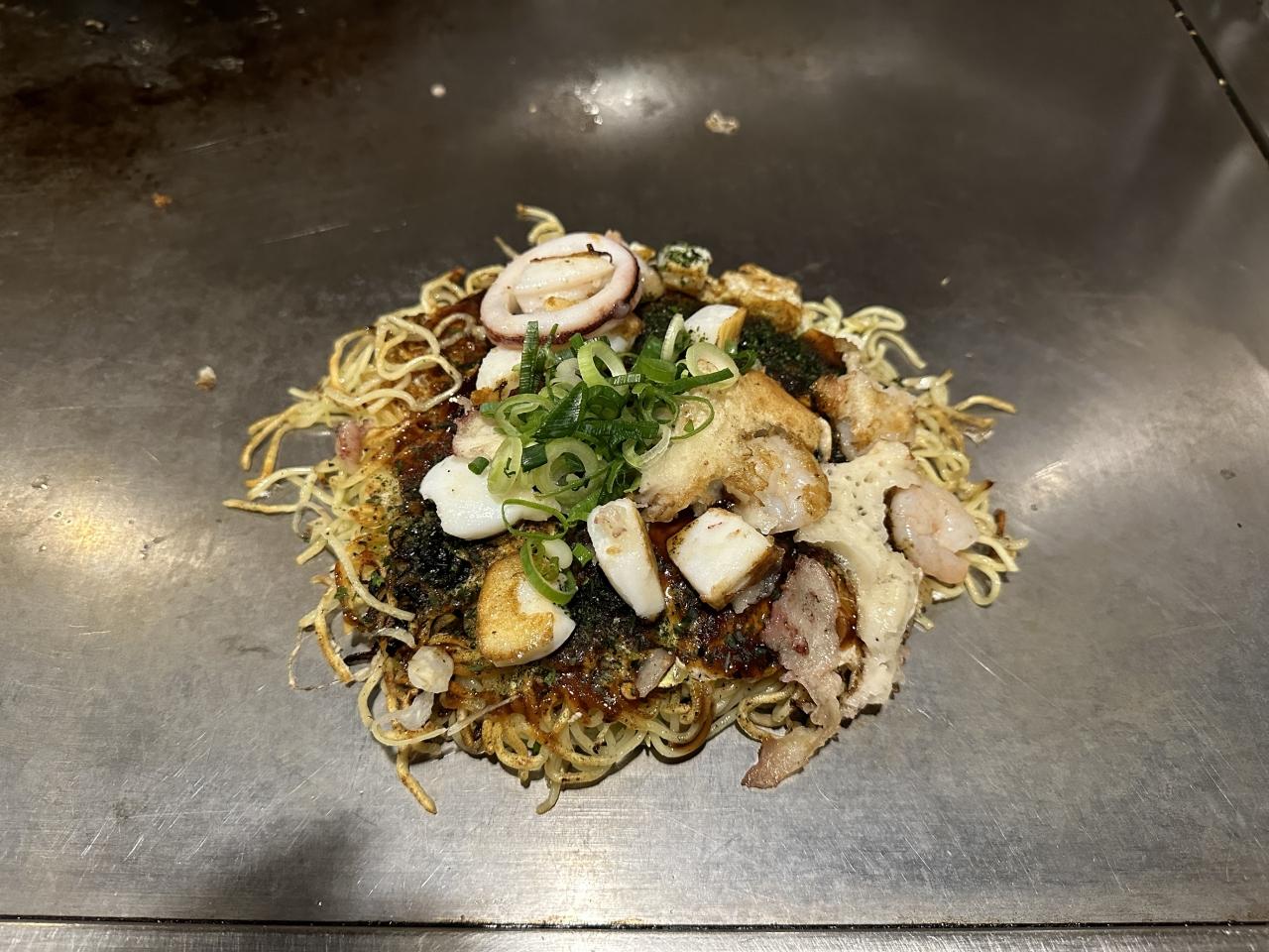 広島に来たので、晩ご飯はお好み焼きです。