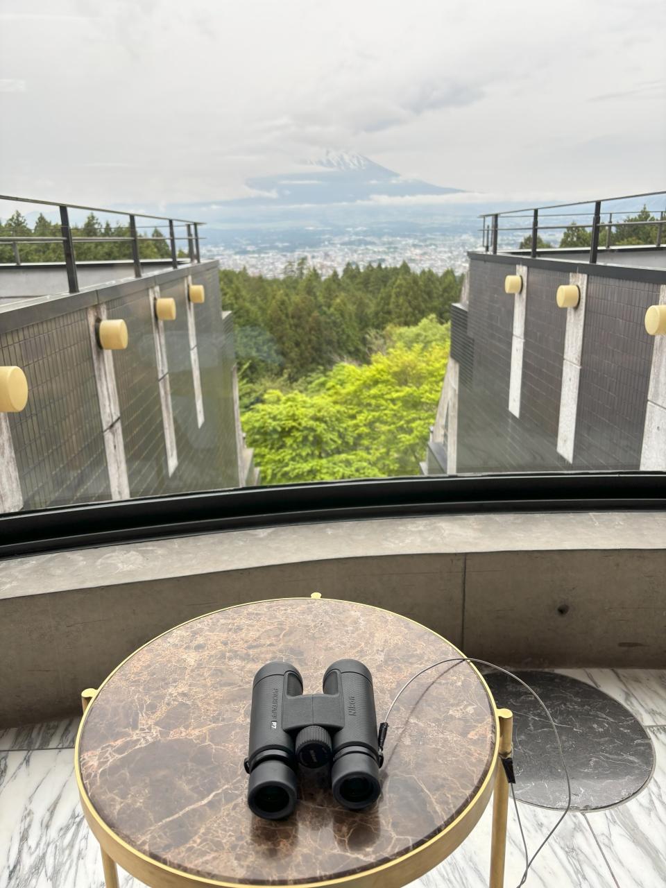 ロビーには双眼鏡もあり、富士山を眺めることを楽しめます。