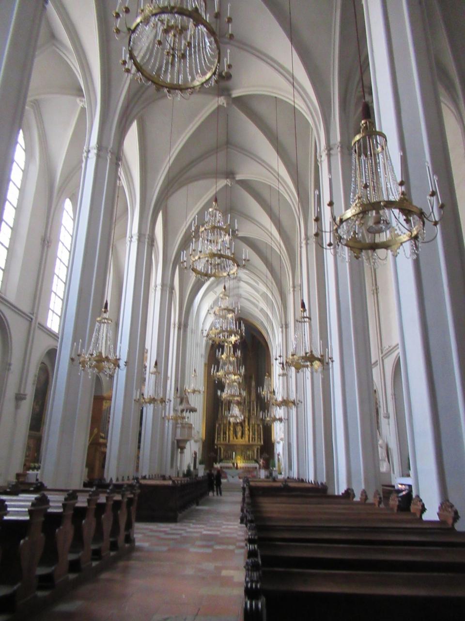 観光客も少なく、教会の中は静謐な感じでした。この教会はゴシック様式で建設され、アーチ型の天井も高く気品がありますよ。