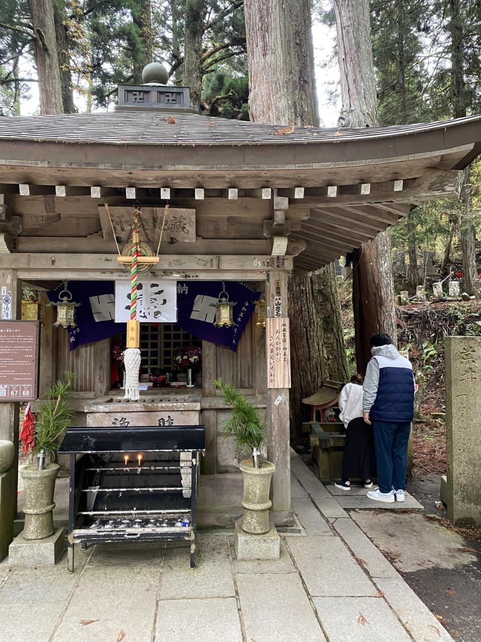 ケーブルカーの高野山駅からさらにバスに乗り一番行ってみたかった奥の院へ。高野山が思ったより広くて日帰りで全部めぐるのは無理でした。弘法大師が迎えに来てくれているというここから歩いて向かいます。
