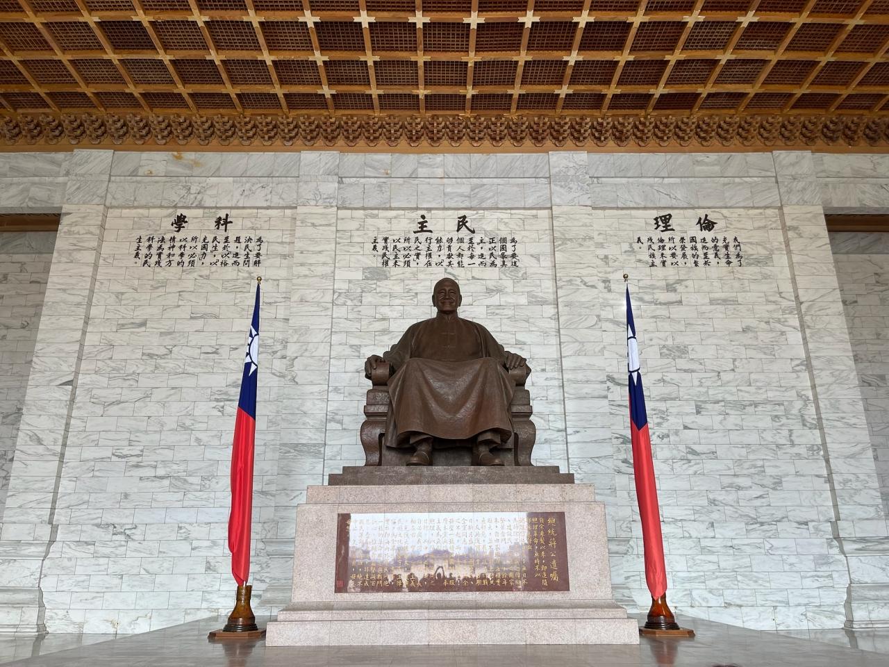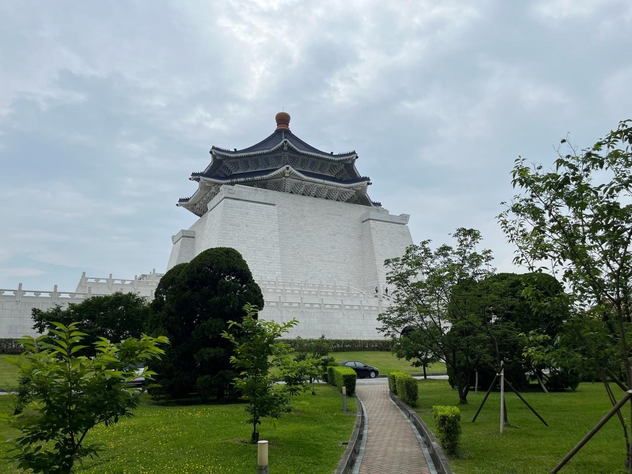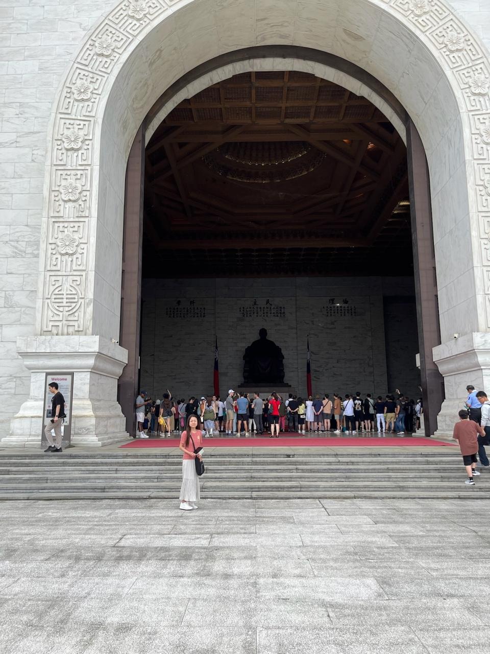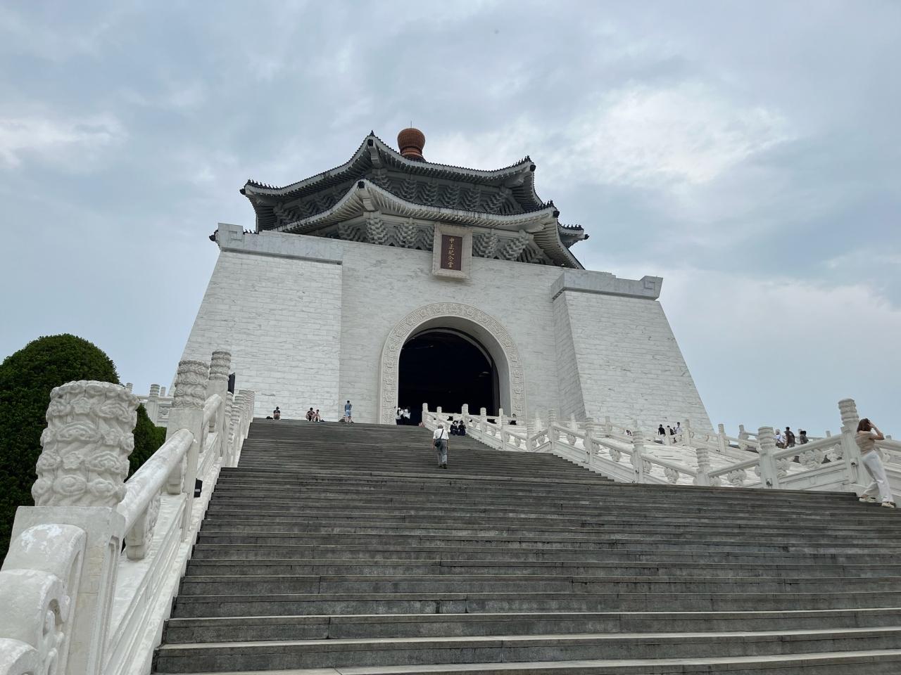 白い大理石の壁が特徴的で、巨大な蒋介石の銅像がある本堂にに向かうには長い階段を登ります。 -
