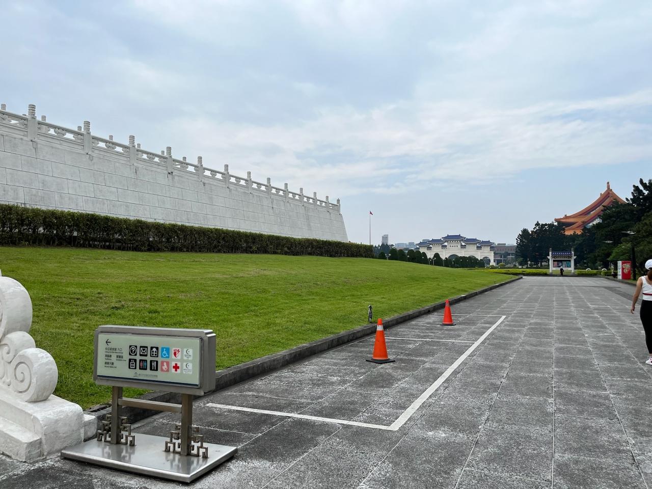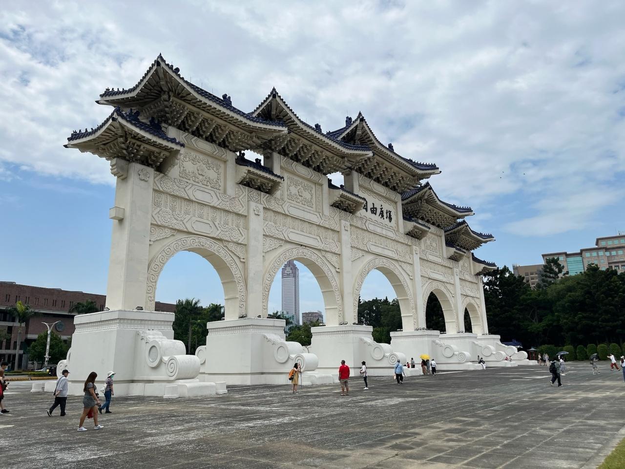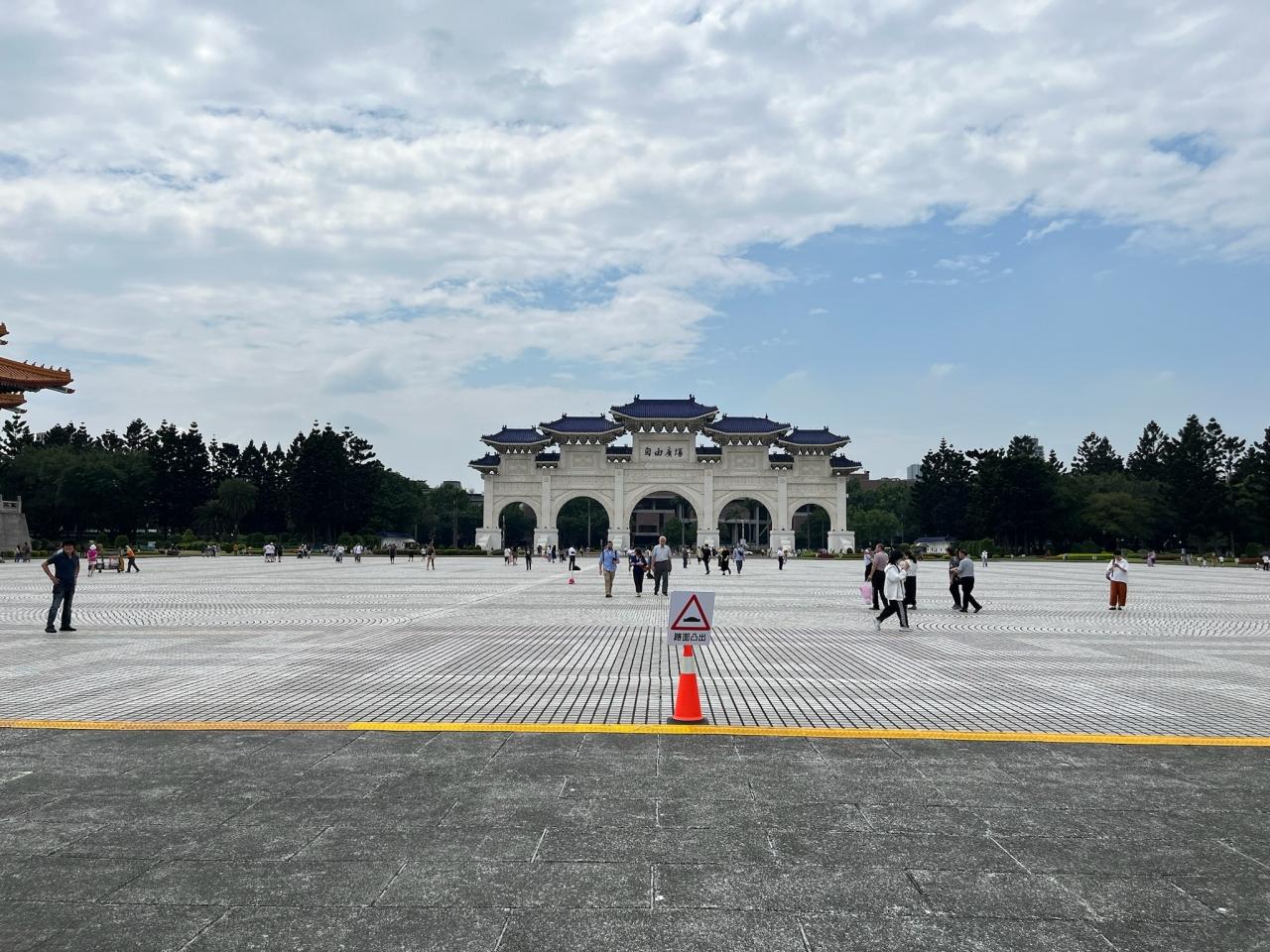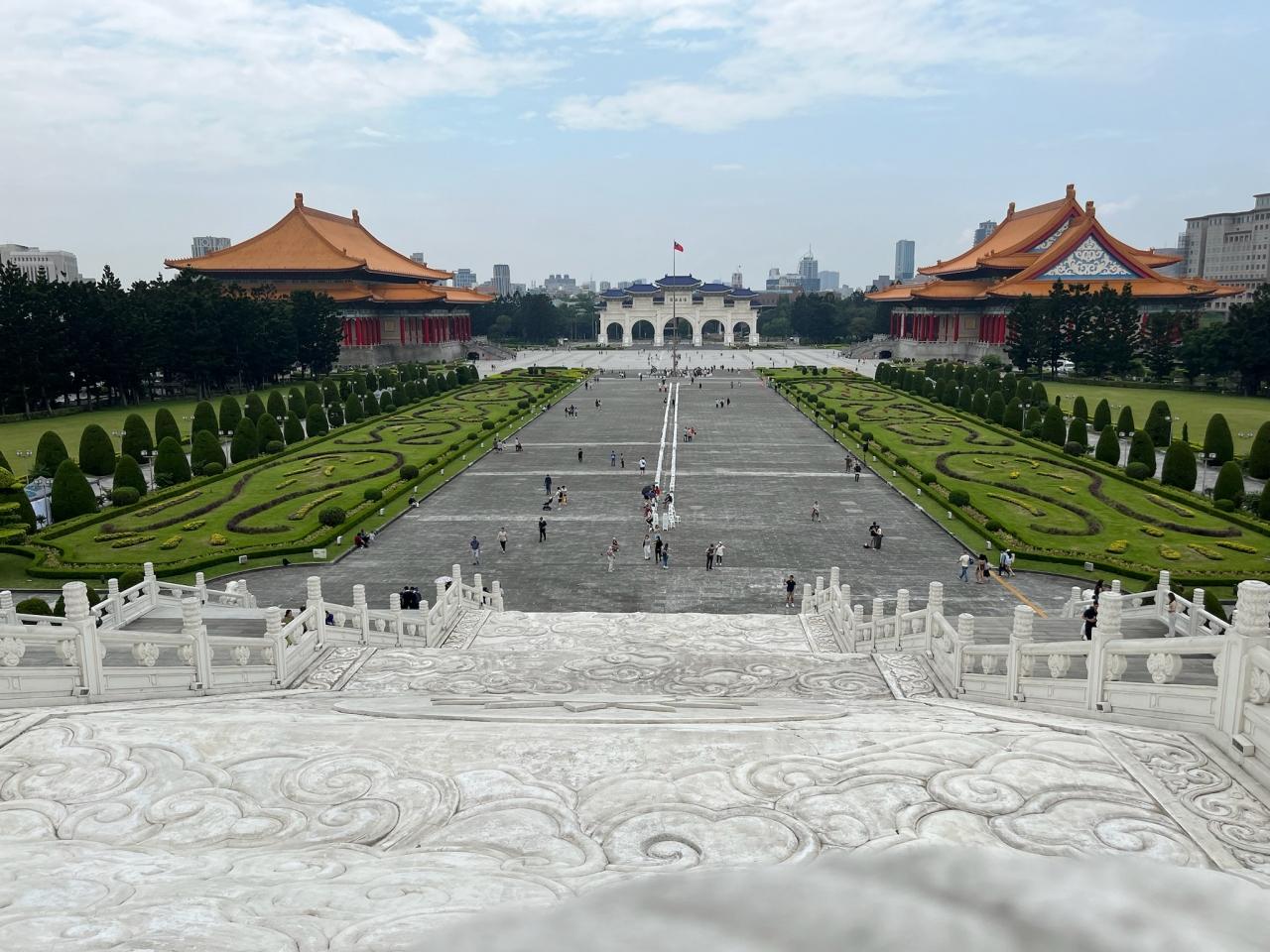 白い大理石の壁が特徴的で、巨大な蒋介石の銅像がある本堂にに向かうには長い階段を登ります。 -