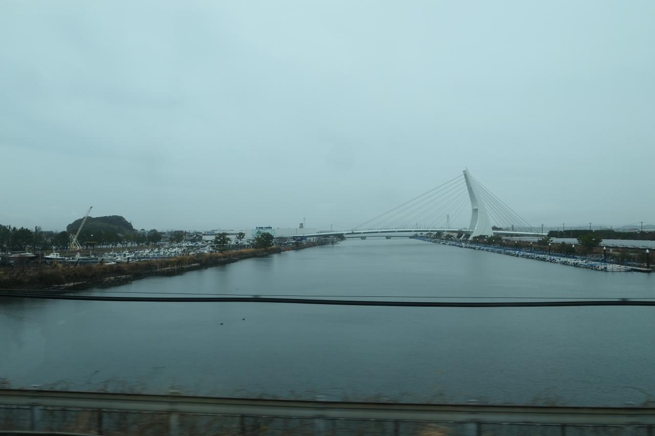 雨に煙る浜名湖。