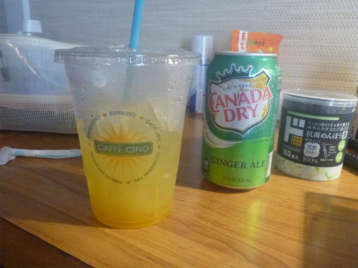ひとまずホテルに戻り、カフェチーノで購入したドリンクで一息つきます。