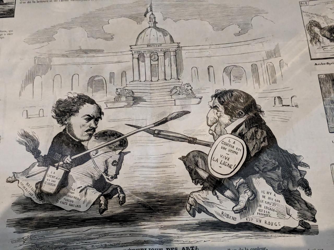 アングルは新古典主義、ドラクロアはロマン派で新しい時代を切り拓いて行ったので何かと気に食わなかったご様子 -