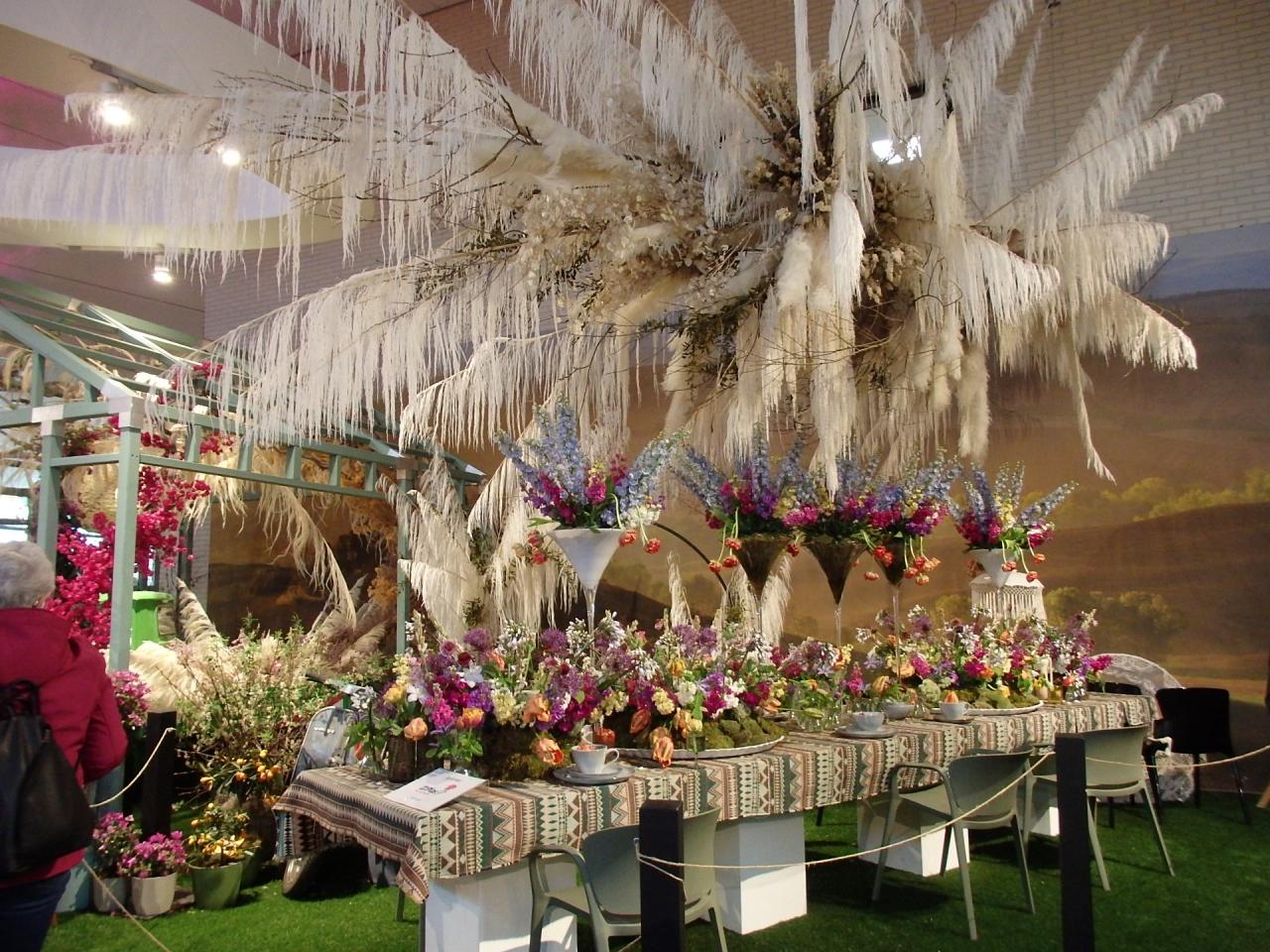 次に入ったパビリオンはOrange Nassau。バスターミナルに近い入り口から一番近いパビリオンです。噴水のある正面から見ると、中央にある円形の部分から左右にまるで両手を広げるかのように続く形の建物が特徴的。館内では様々な大きめのフラワーアートが展示されていました。