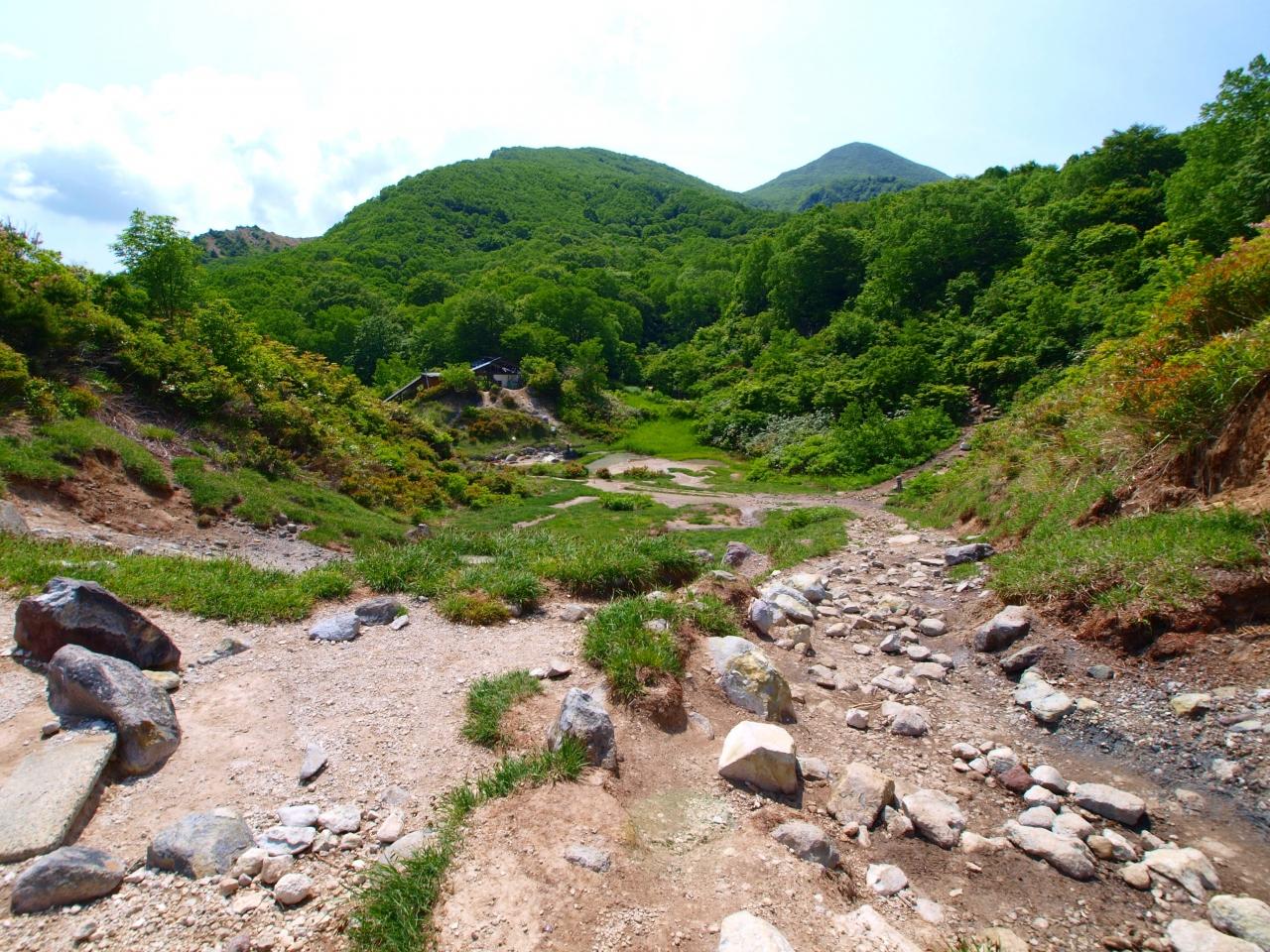 中の湯に到着しました。梅雨入り前ですが真夏のような空でした。八方台第一駐車場まではあと30分くらいでゴールです。13時頃に下山することができました。