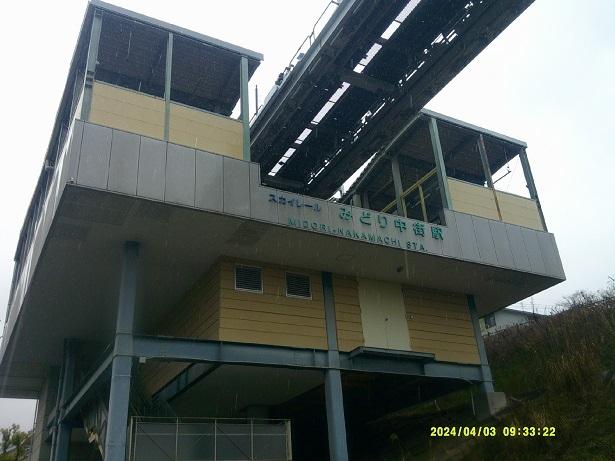 そして、みどり口駅の高架ホームに近い高さの箇所で、私にとっての見納めスカイレール さんが、出発していきました。