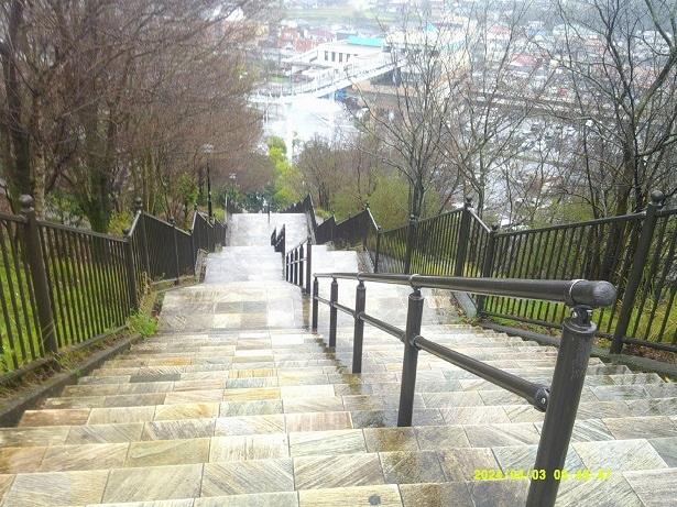 生憎の雨模様の中、昨晩と逆ルートで駅へと戻りましょう。 -