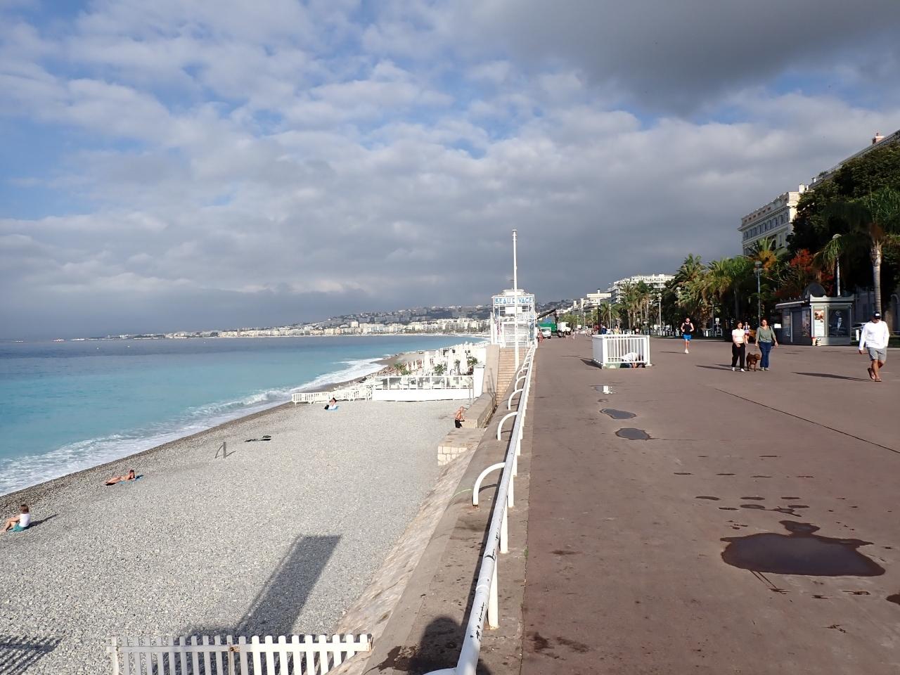 モナコから鉄道でニースに入った。ホテルは駅前方が安いので、駅前に。買い物には興味が無いので海岸へ。