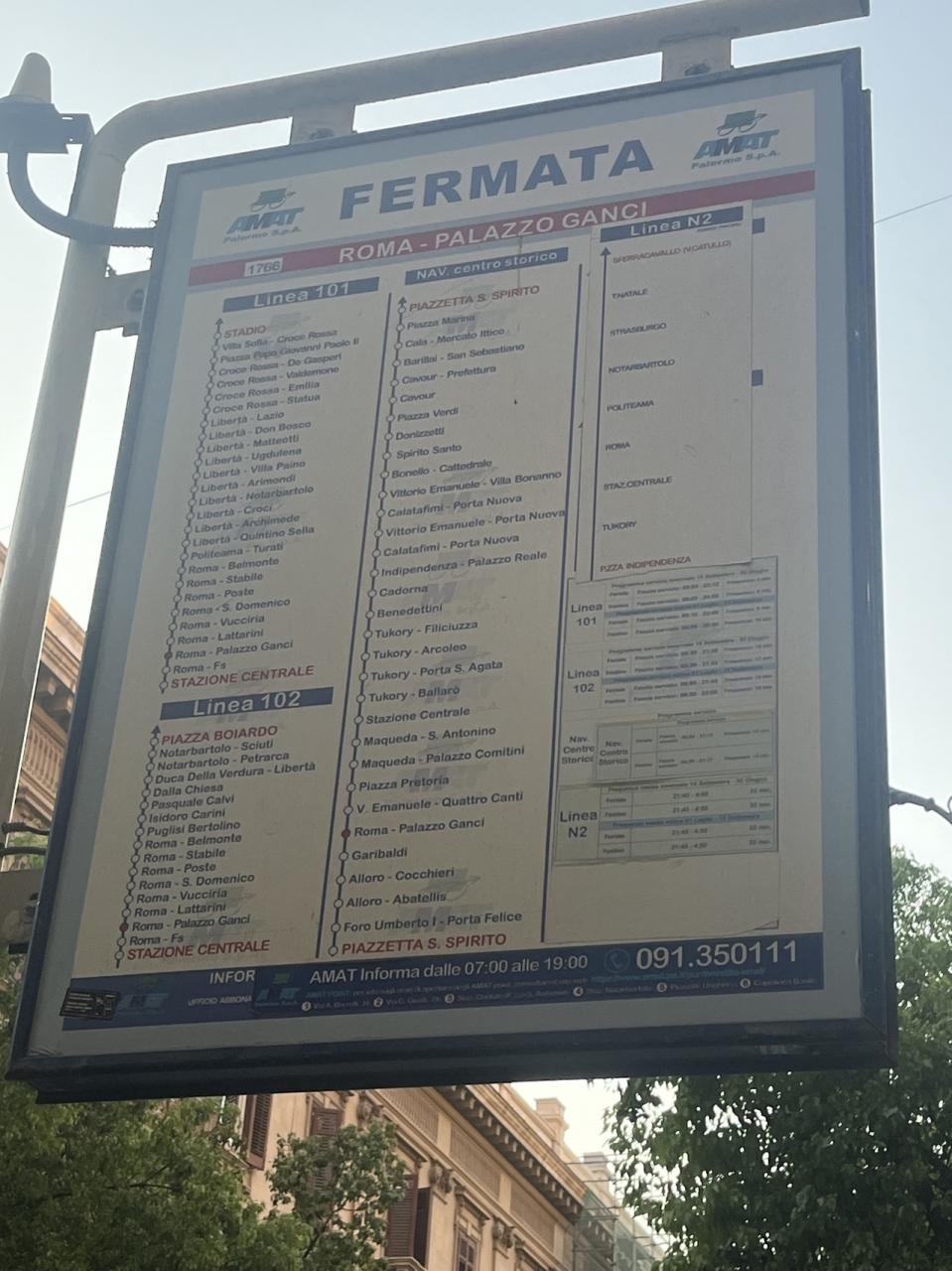 ホテル目の前のバス停は「Roma Palazzo Ganci」