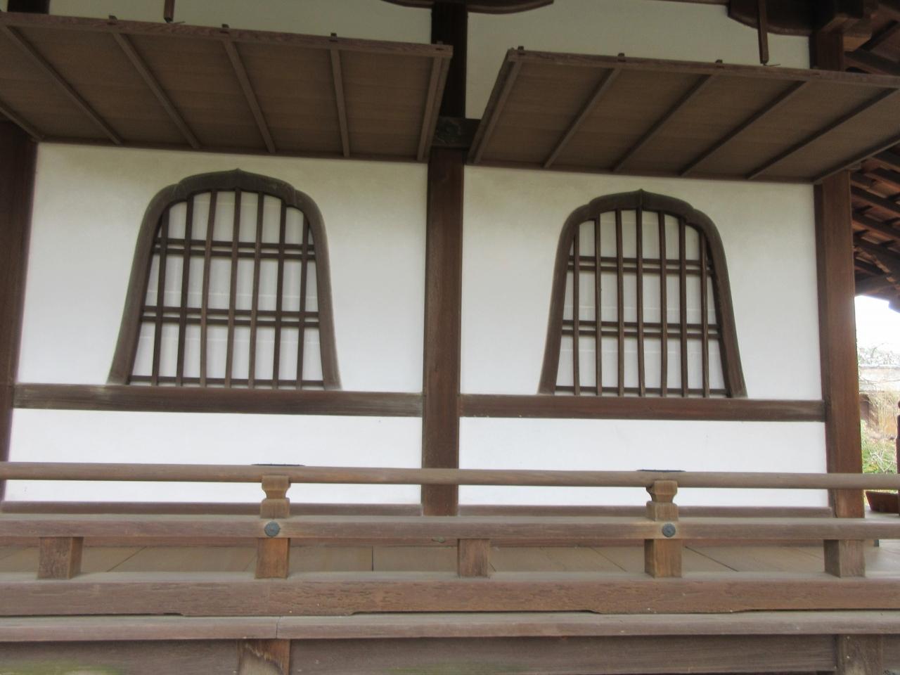 にじり口の内側は三畳台目(茶室用の畳)の本格的な茶室で、遠州好みの八窓(やつまど)の囲い。 -
