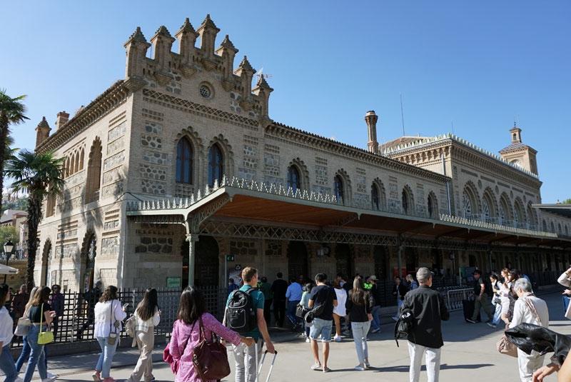 ホーム側から見た駅舎。外観は教会ふうで、世界でも屈指の美しい駅舎として知られているトレド駅。