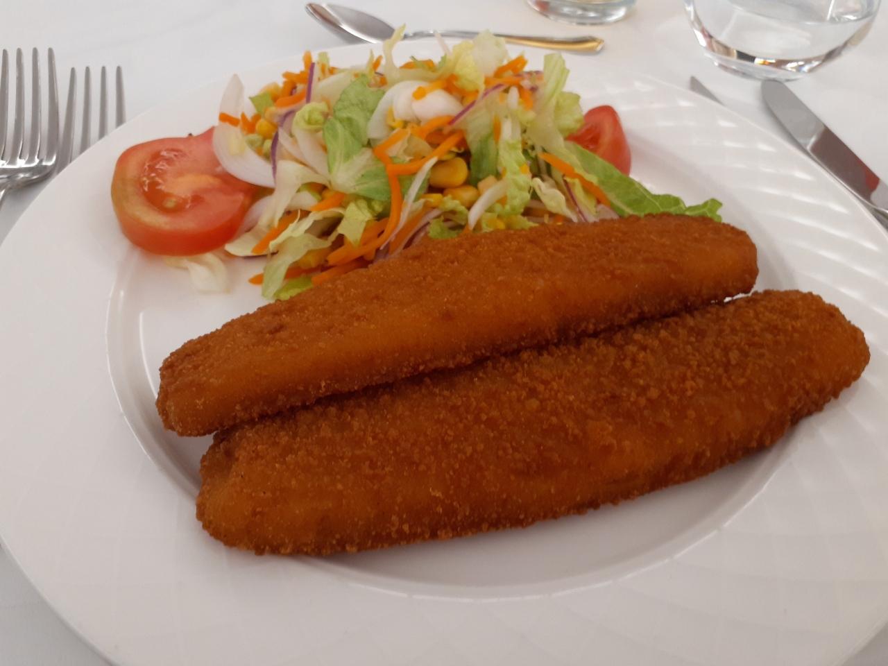 夕食はホテルでメルルーサのフライ。昼にステ^キで夜にこのフライ2枚は間食したが、しんどい。食事を選べないのがツアーの難点。