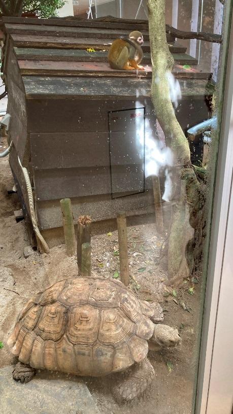 レストランに行く通路にリスザルとリクガメもいました。