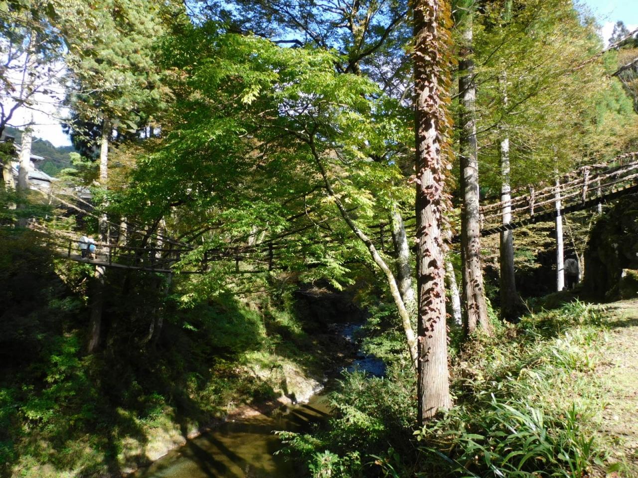 本場のかずら橋(徳島県)に比べると、足元の隙間が小さいので歩きやすく、恐怖感も少ないです。