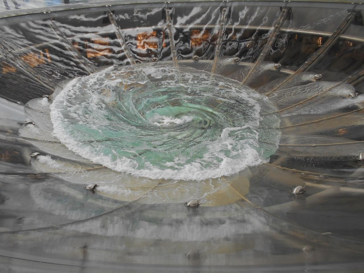 水が渦になり、グルグル回りながら、落ちていきます。