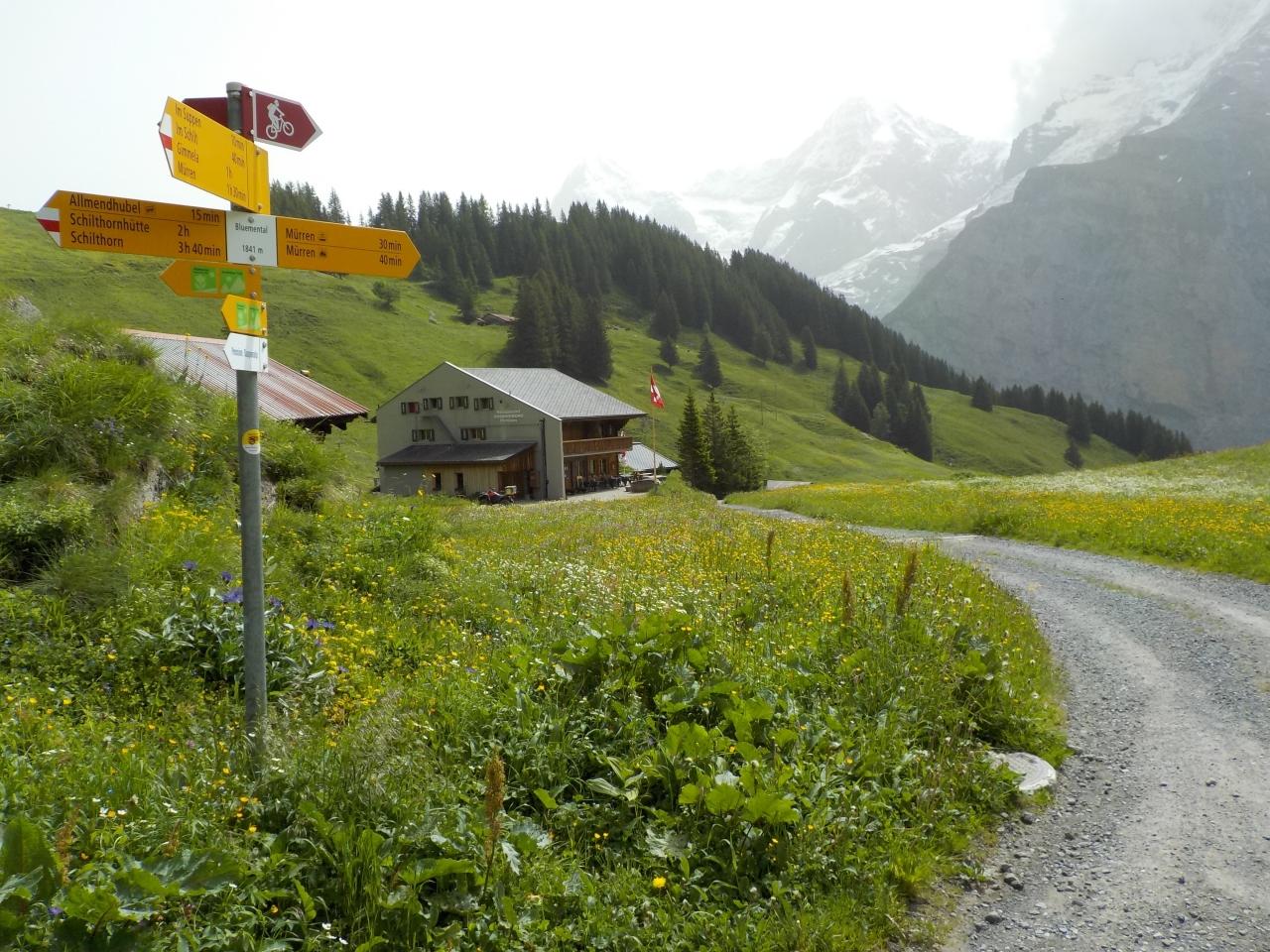 奥に見えているレストラン・ゾンネンベルク(Sonnenberg)の辺りでミューレンに向かう道もあるんですが・・・