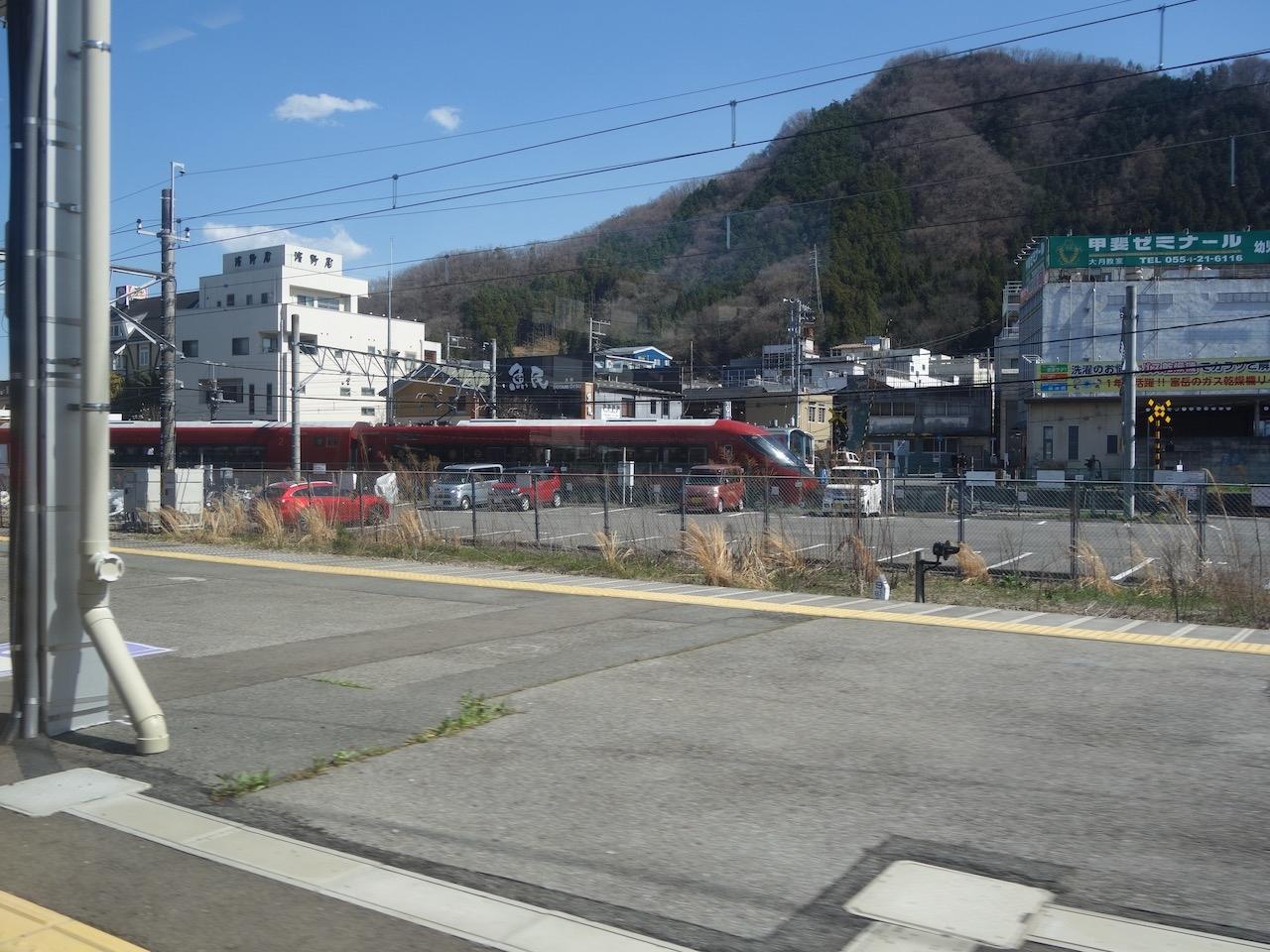 勝沼ぶどう郷。下には昔のスイッチバック時代のホームが残ってます。