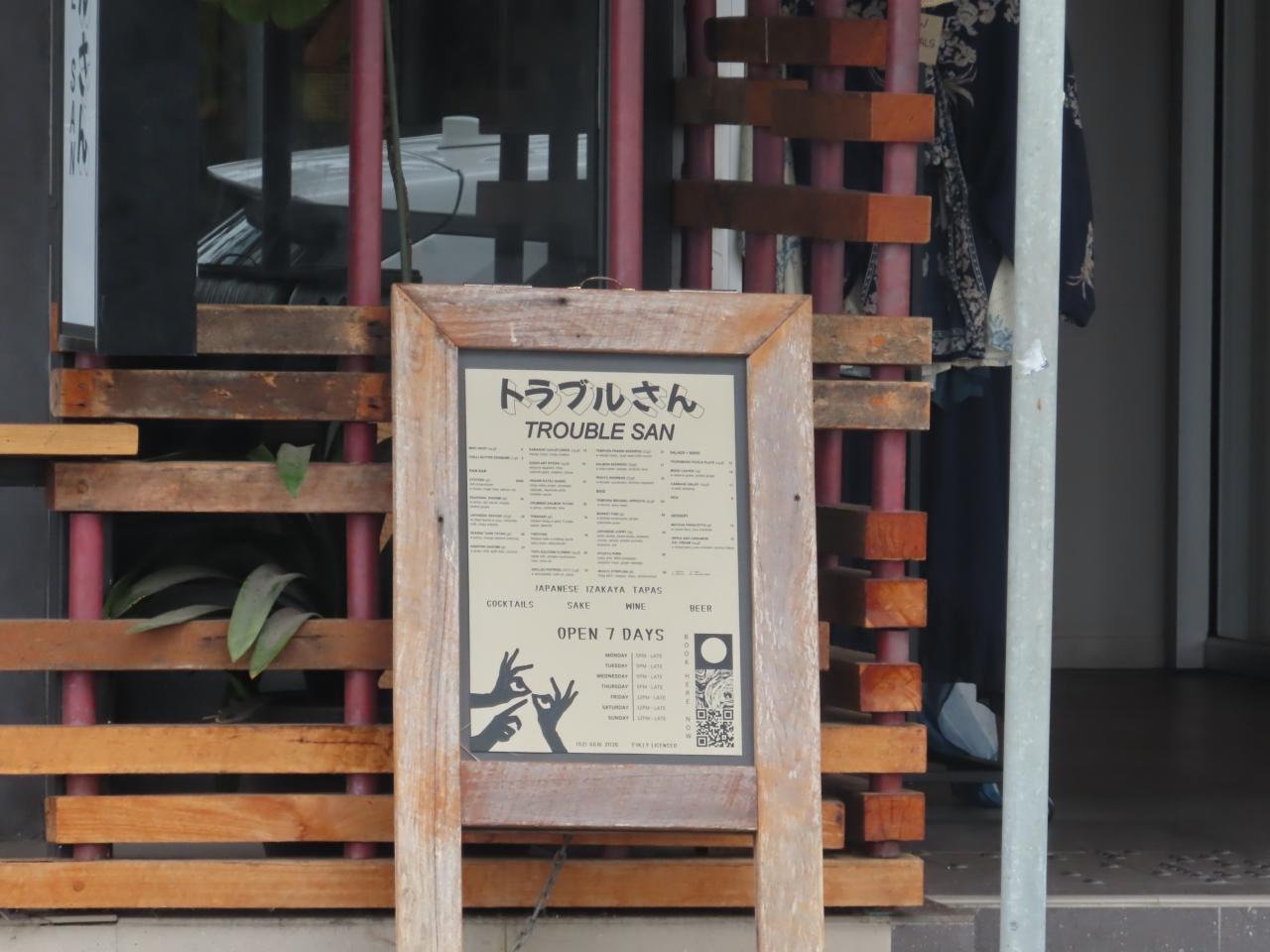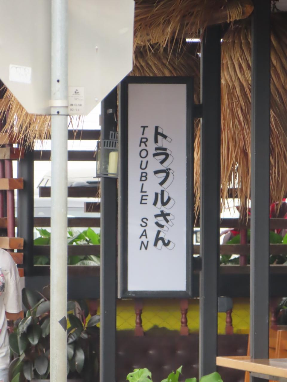 「トラブルさん」という店名のJAPANESE IZAKAYAだってさ