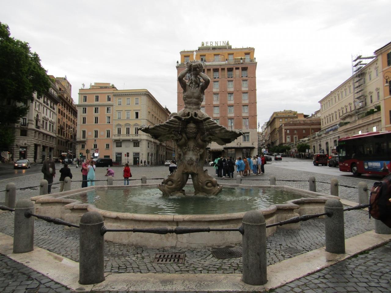 広場中央には、ベルニーニ作の「トリトーネの噴水」があります。